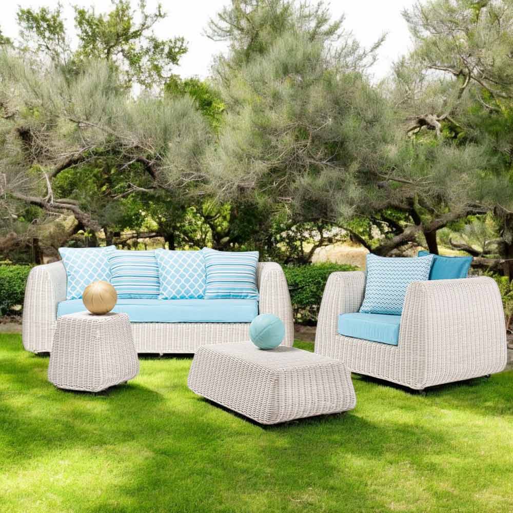 Sala de estar ao ar livre em polyrattan tecido à mão.