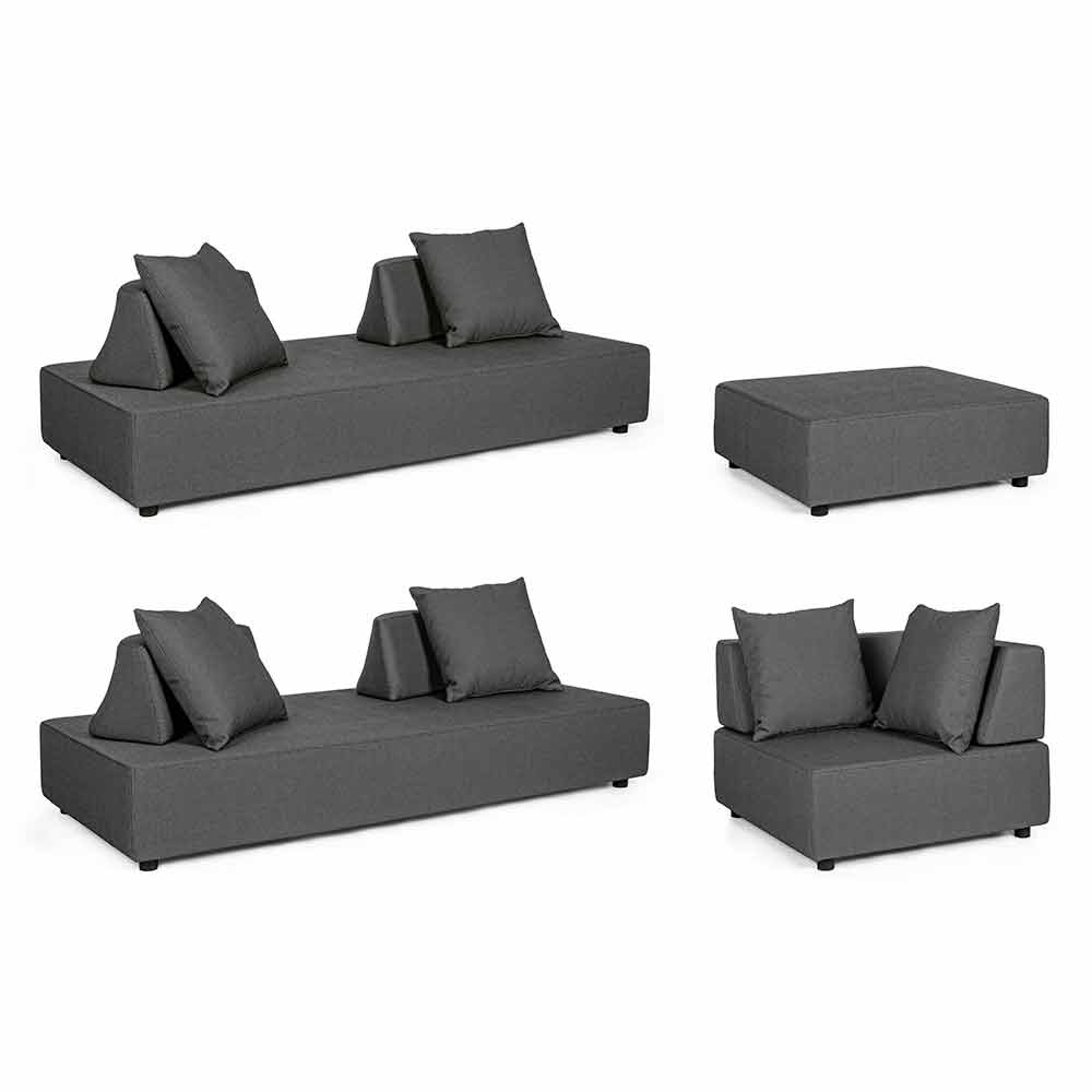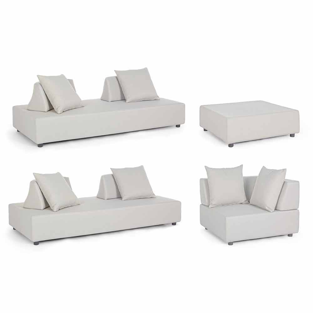 | Dimensões | Sofá de canto: A90 x P90 x A32; Sofá: L200 x P90 x H32; Otomano: C90 x P90 x H32; Volta meia-lua: C69 x P36 x H32; Canto posterior: C90 x P90 x A32 cm |