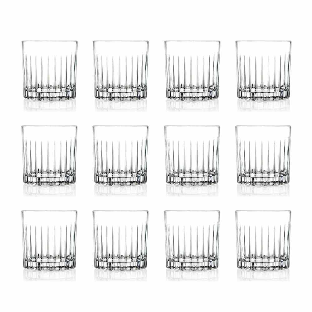 12 copos luxuosos à moda antiga com um design versátil em cristal ecológico decorado 100% made in Italy.