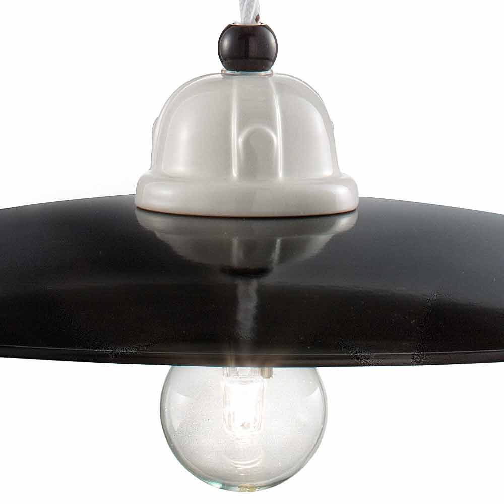 Lâmpada feita de cerâmica preta brilhante, no que diz respeito ao acabamento externo do difusor, enquanto a estrutura, moldura e fio têm acabamento branco brilhante. Melissa está disponível em diferentes tamanhos.