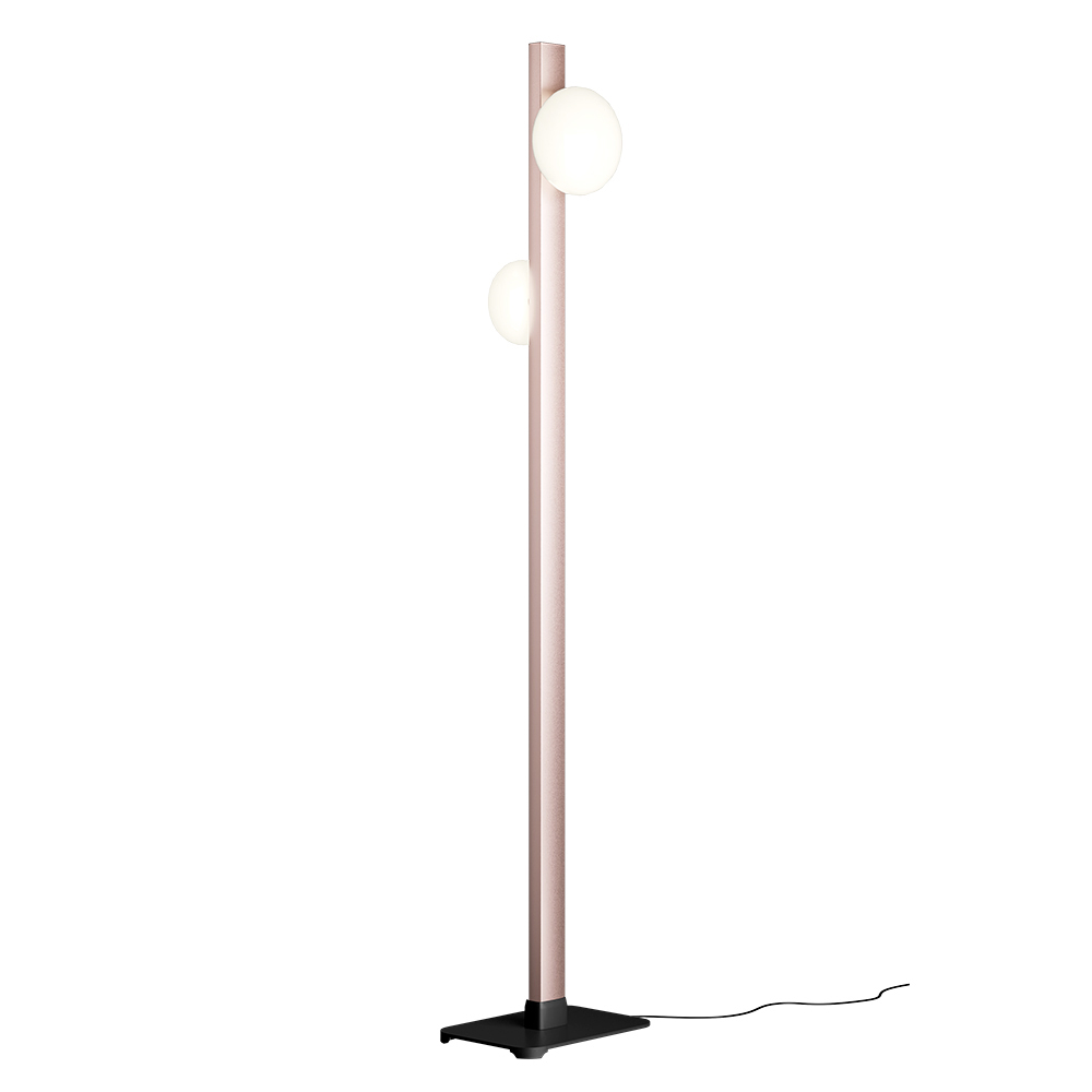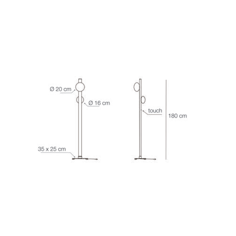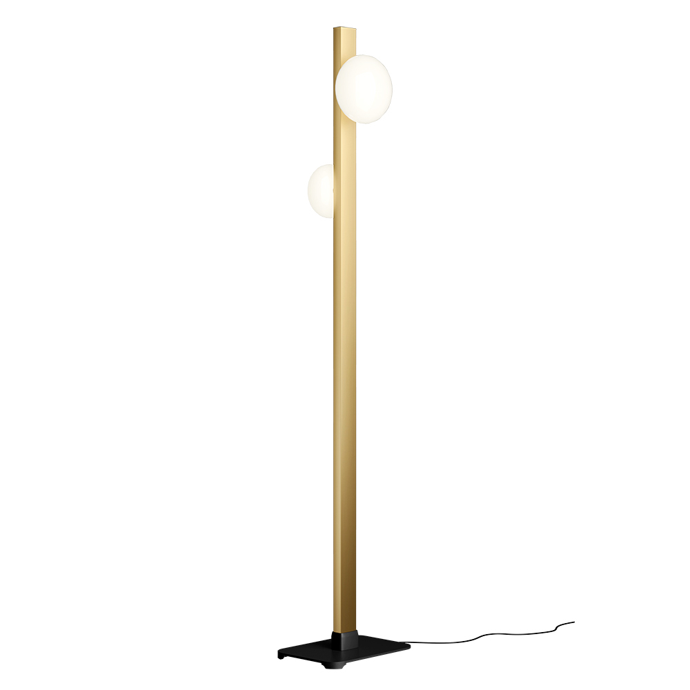 Esta luminária de chão é o equilíbrio perfeito entre design escultural e elegância funcional , ideal para realçar qualquer espaço com um estilo moderno e refinado . A estrutura vertical esguia e geométrica abriga dois difusores esféricos de vidro opalino , que parecem suspensos em perfeito equilíbrio, emitindo uma luz suave e envolvente .
