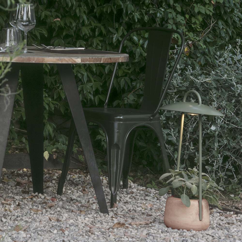 Luminária de exterior em barro, alumínio e latão fabricada em Itália