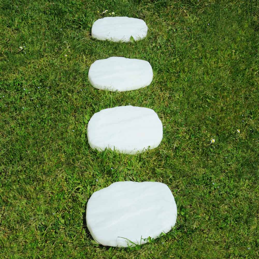 Marcadores de degraus de jardim em forma de pedra para desenhar caminhos no jardim que são visíveis mesmo à noite. Resiste a altas e baixas temperaturas, choques violentos, raios ultravioleta, bem como a todos os tipos de intempéries, e mantém a sua forma intacta ao longo do tempo. Disponível na versão branco fluo ou azul fluo . A pigmentação fluorescente especial faz com que o ladrilho acumule luz natural e artificial durante o dia e libere-o gradativamente à noite, produzindo um brilho mágico até de manhã. O pigmento fluorescente é atóxico e totalmente inofensivo à saúde. Cada pacote contém 4 peças.