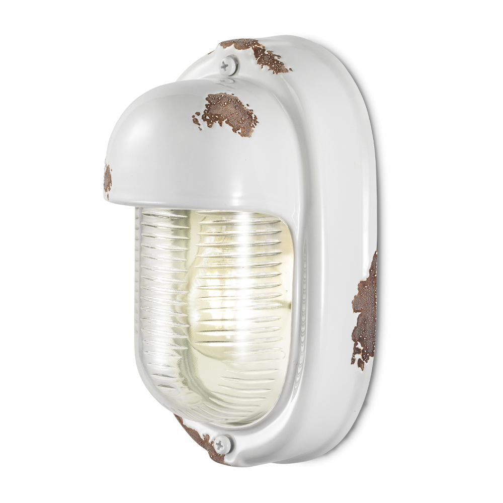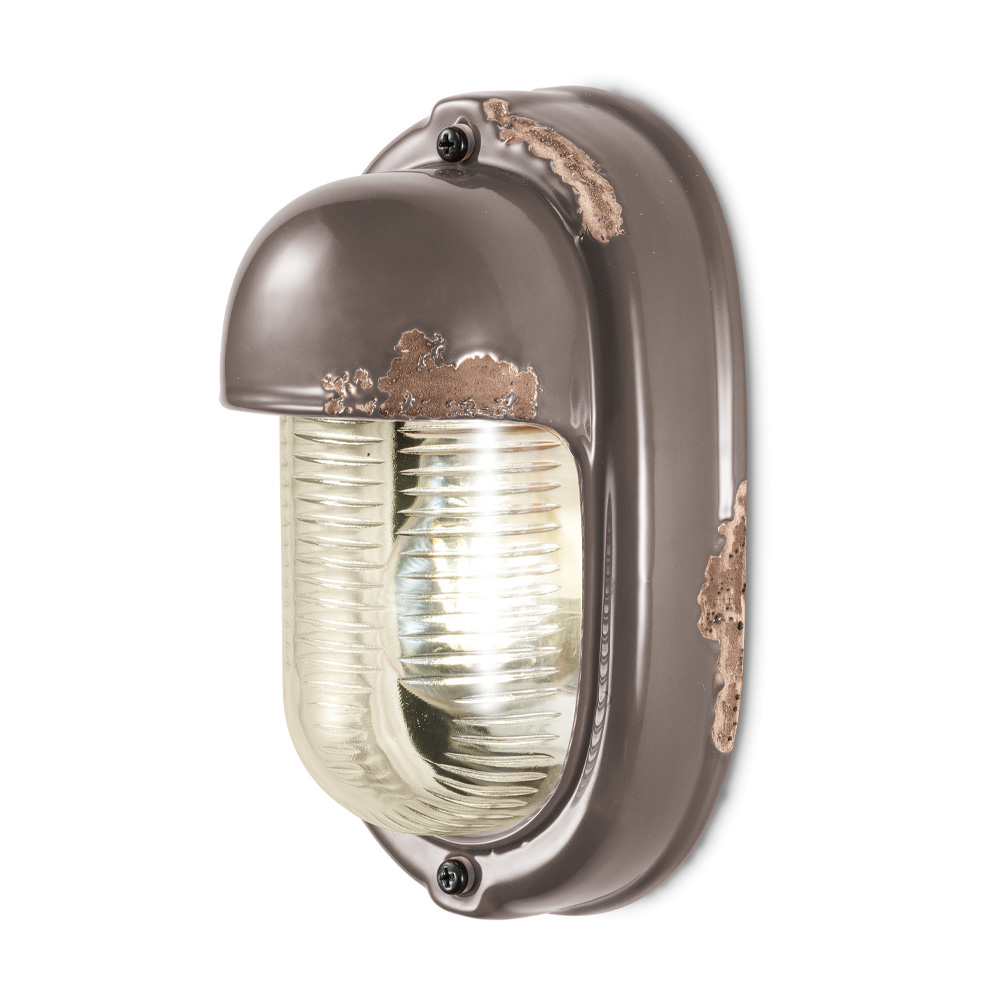 Luminária de parede vertical de cerâmica e metal artesanal de estilo industrial fabricada na Itália pela Ferroluce.