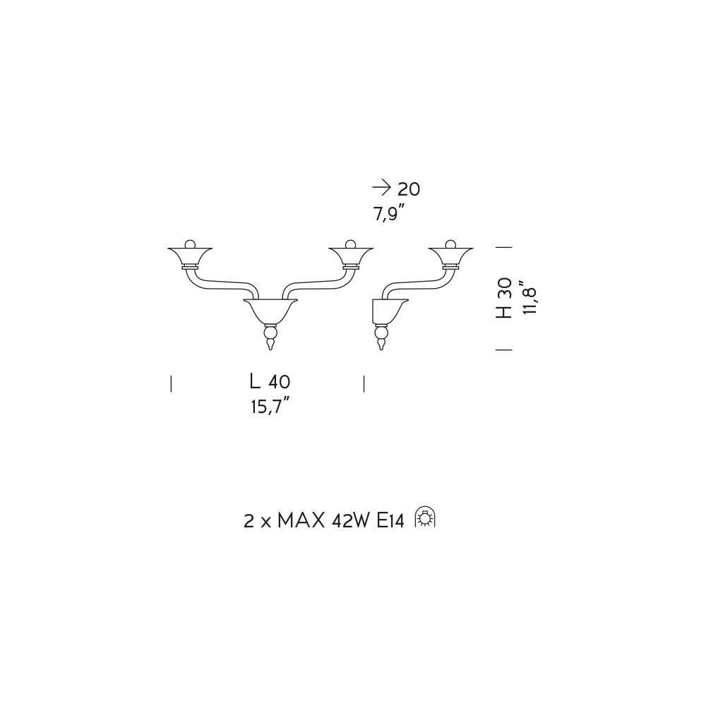 Lâmpadas (não incluídas) : 2 x MAX 42W E14