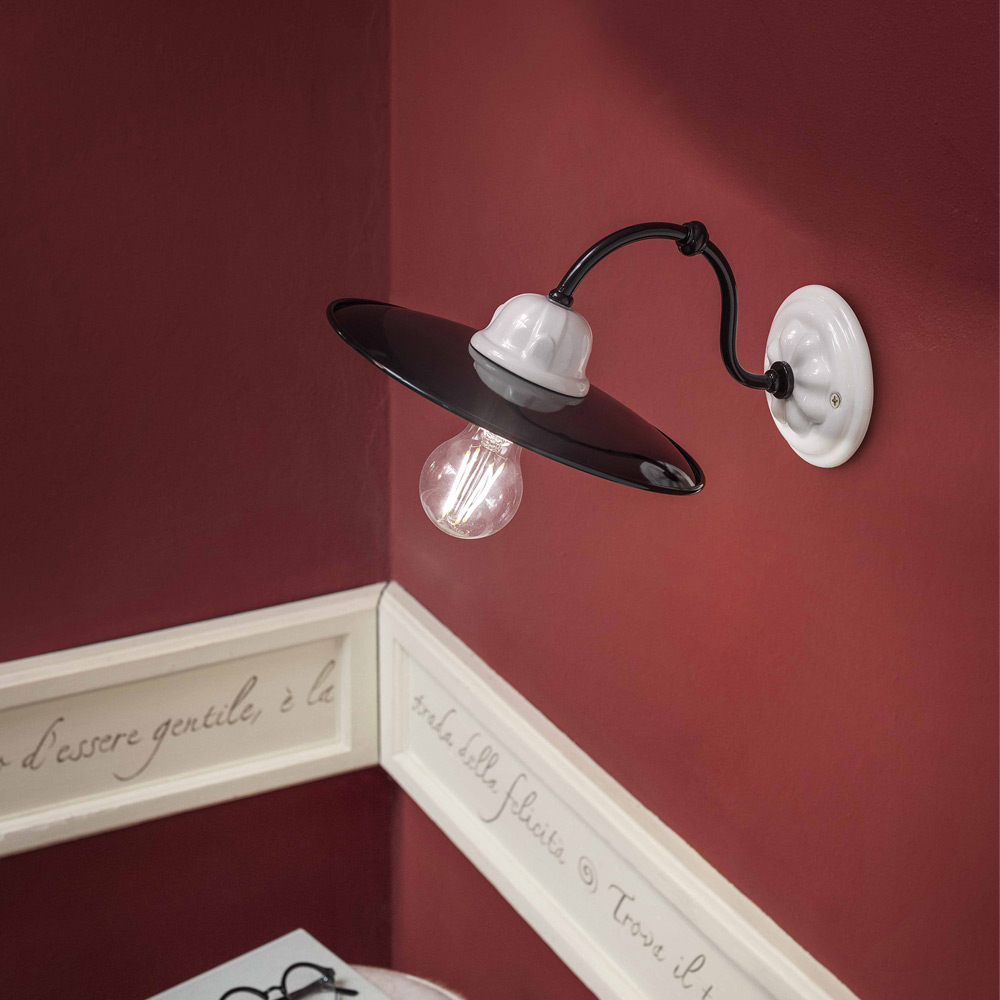 Candeeiro de parede bicolor em cerâmica e metal fabricado na Itália pela Ferroluce.