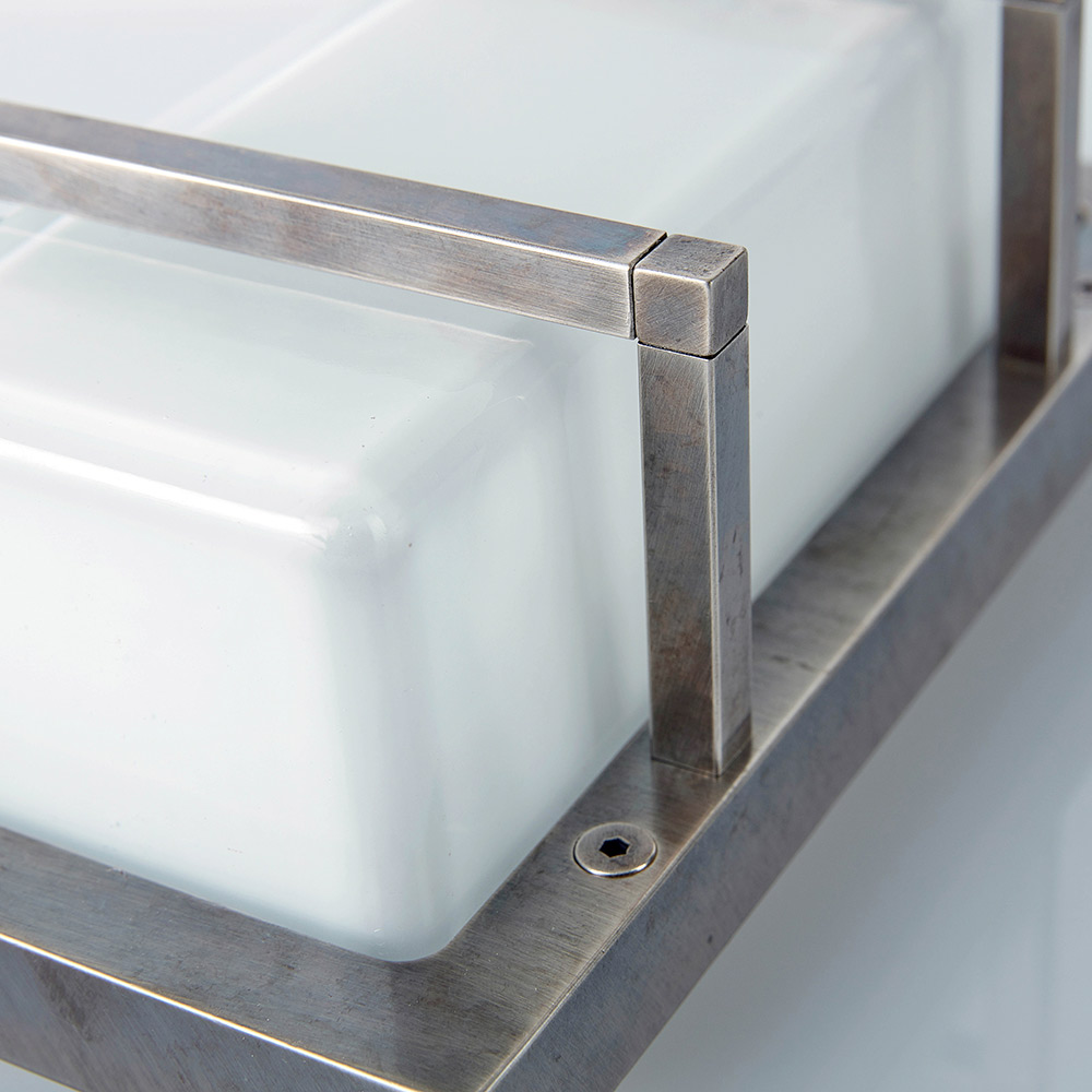 Simples e elegante, este aplique de parede artesanal é uma solução de iluminação refinada, projetada para valorizar paredes modernas e espaços contemporâneos. A estrutura em latão fundido , combinada com um difusor retangular de vidro opalino , cria uma luz suave e uniforme, ideal para uma iluminação acolhedora e funcional.