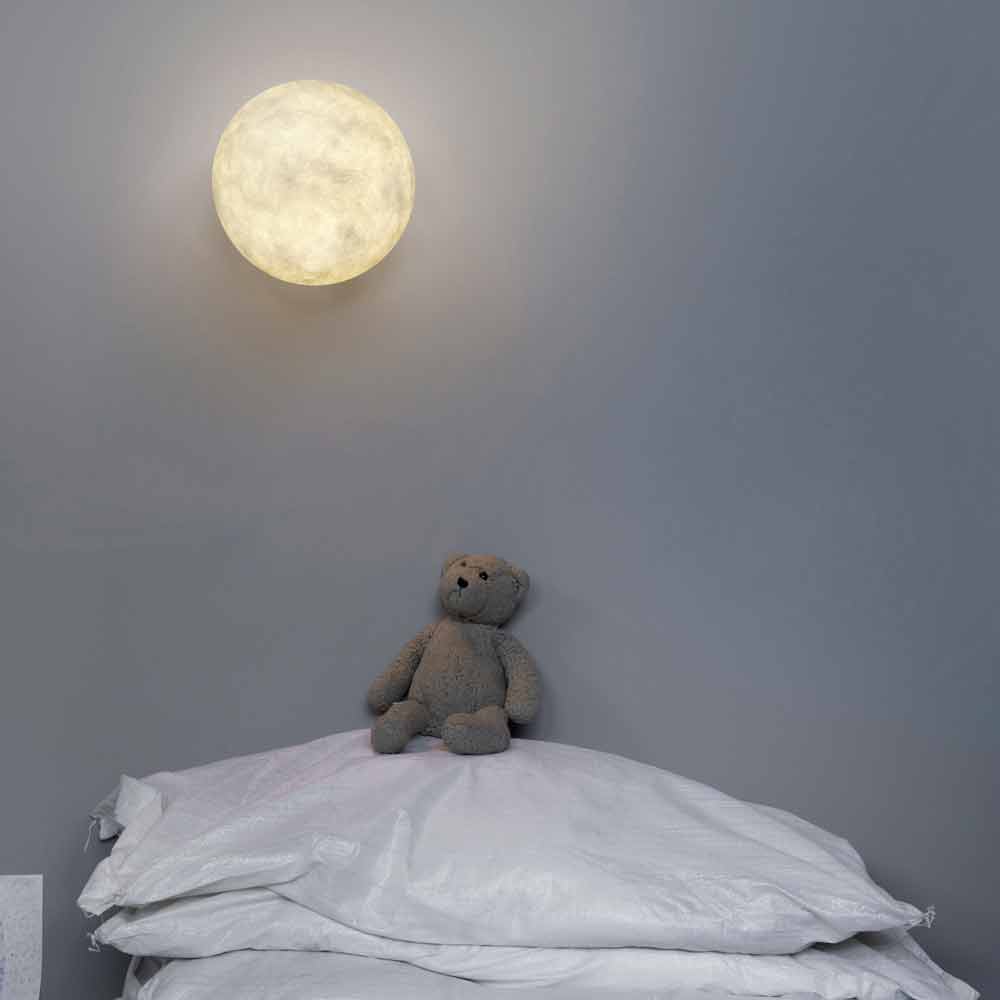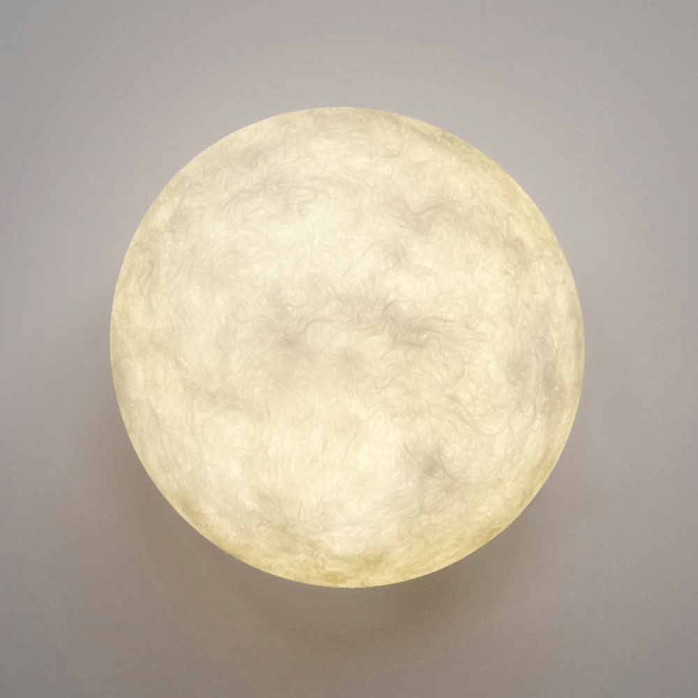 O design e a forma da lâmpada de parede A. Monn lembra a lua real.