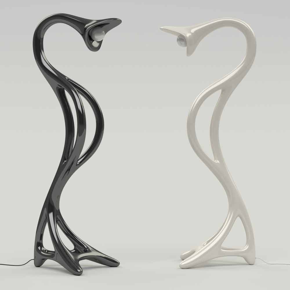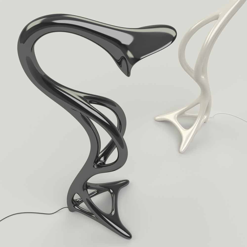 Drago é o candeeiro de pé que acompanha a secretária Batllò, inspirado na famosa casa que lhe dá o nome. A luminária é inspirada na famosa realização zoomórfico-fantástica do dragão, presente entre os principais temas da extraordinária criação da qual pretende evocar as linhas imaginativas e suaves, a atmosfera onírica e sonhadora. A estrutura da Superfície Sólida; realça admiravelmente o brilho e a plasticidade das formas. Lâmpada disponível em duas variantes de cores: Branco Creme (RAL9001) ou Preto (RAL9005).
