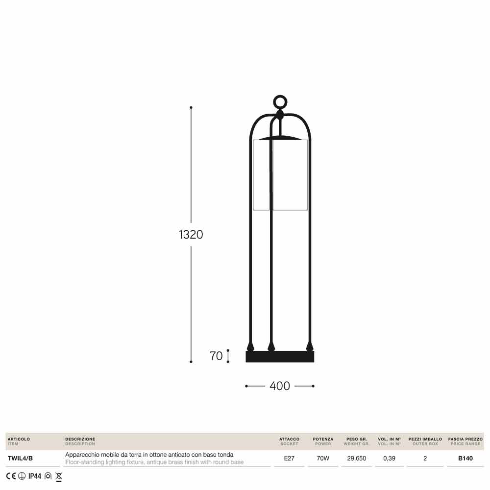 Candeeiro de pé moderno para exterior Pitosforo by Aldo Bernardi, feito de latão e metacrilato.