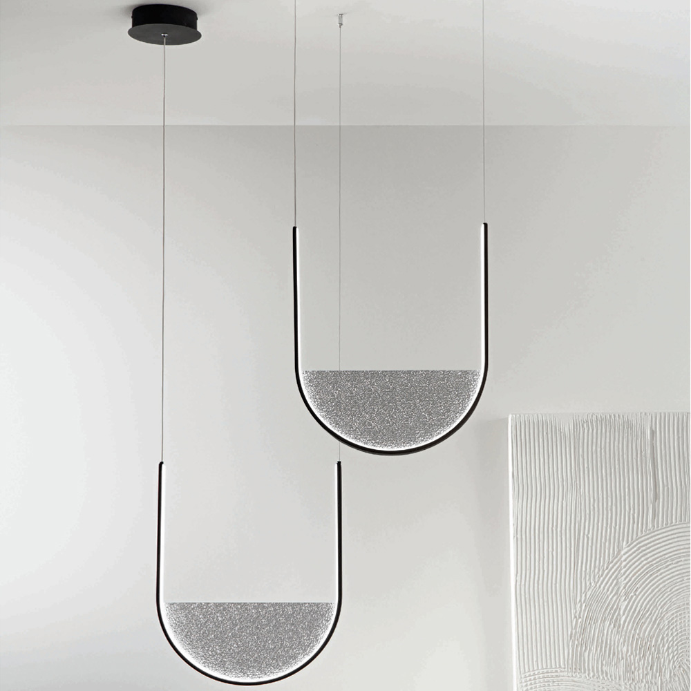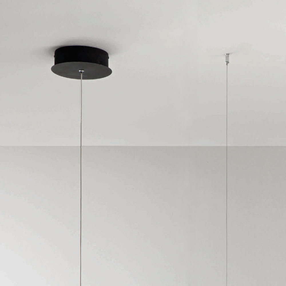 Candeeiro suspenso com luz LED regulável em metal e inserção de vidro Made in Italy