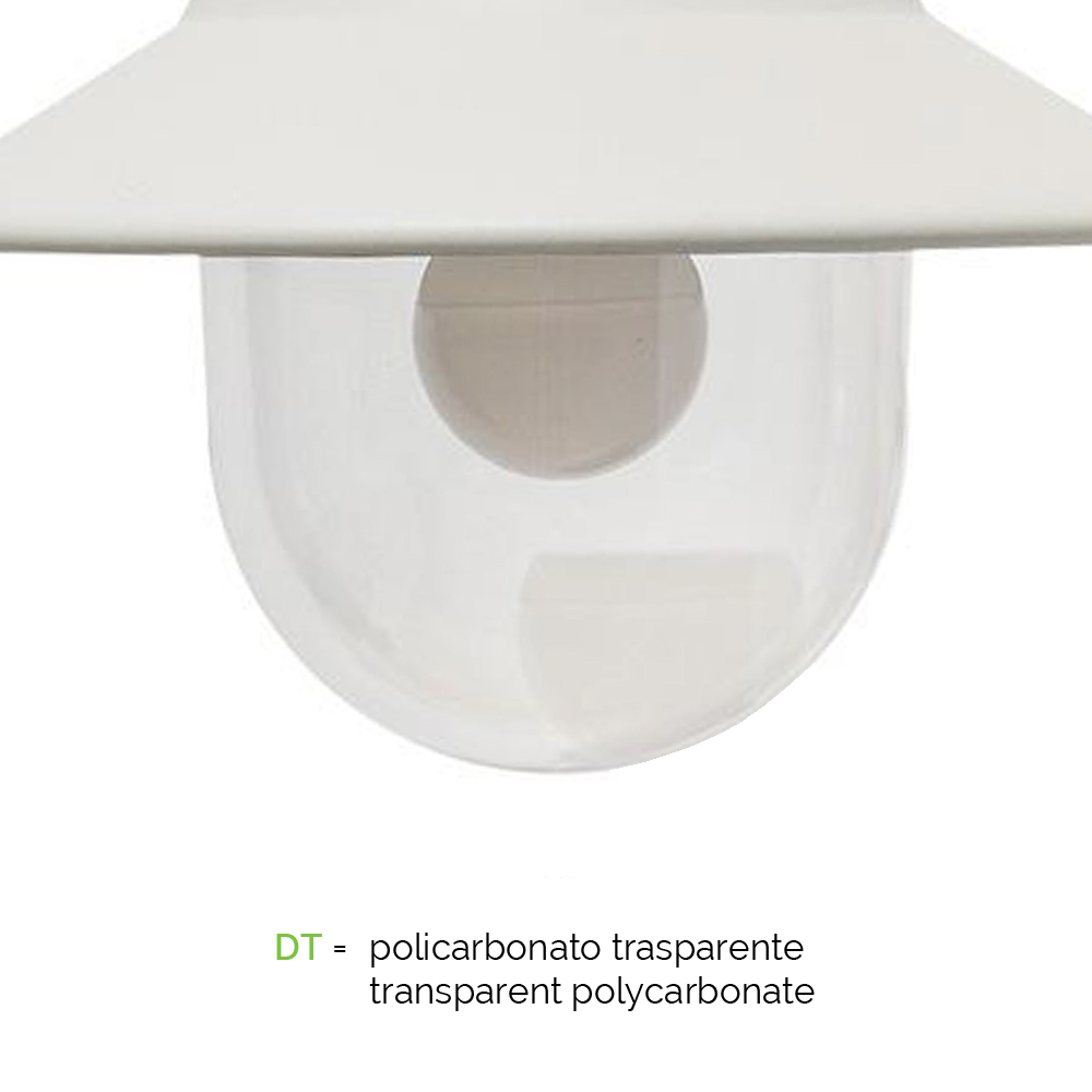 em policarbonato completo com parafusos em aço inoxidável. Um produto com uma forte personalidade elegante caracterizada por um estilo vintage que aumenta a sua singularidade e sublinha a sua estética requintada. Ideal para mobiliar ambientes externos domésticos ou contratados, como jardins, varandas, avenidas e calçadas. As tonalidades propostas são estritamente