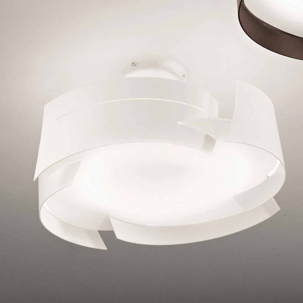 Coleção de design dinâmico que inclui lâmpadas suspensas e de teto, disponíveis em dois tamanhos diferentes.