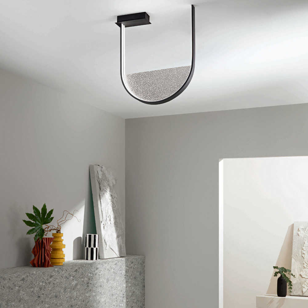 Luminária de teto com luz LED regulável em metal e inserção de vidro Made in Italy