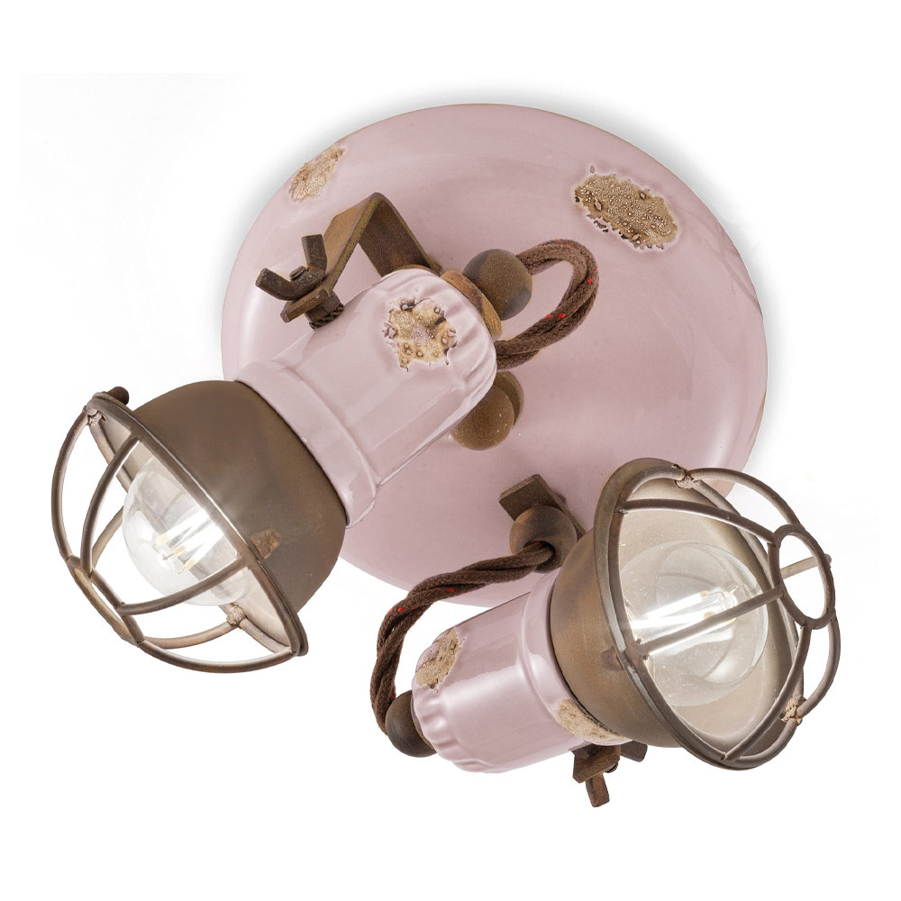 Lâmpada de teto 2 holofotes em cerâmica e ferro design industrial fabricado na Itália pela Ferroluce.