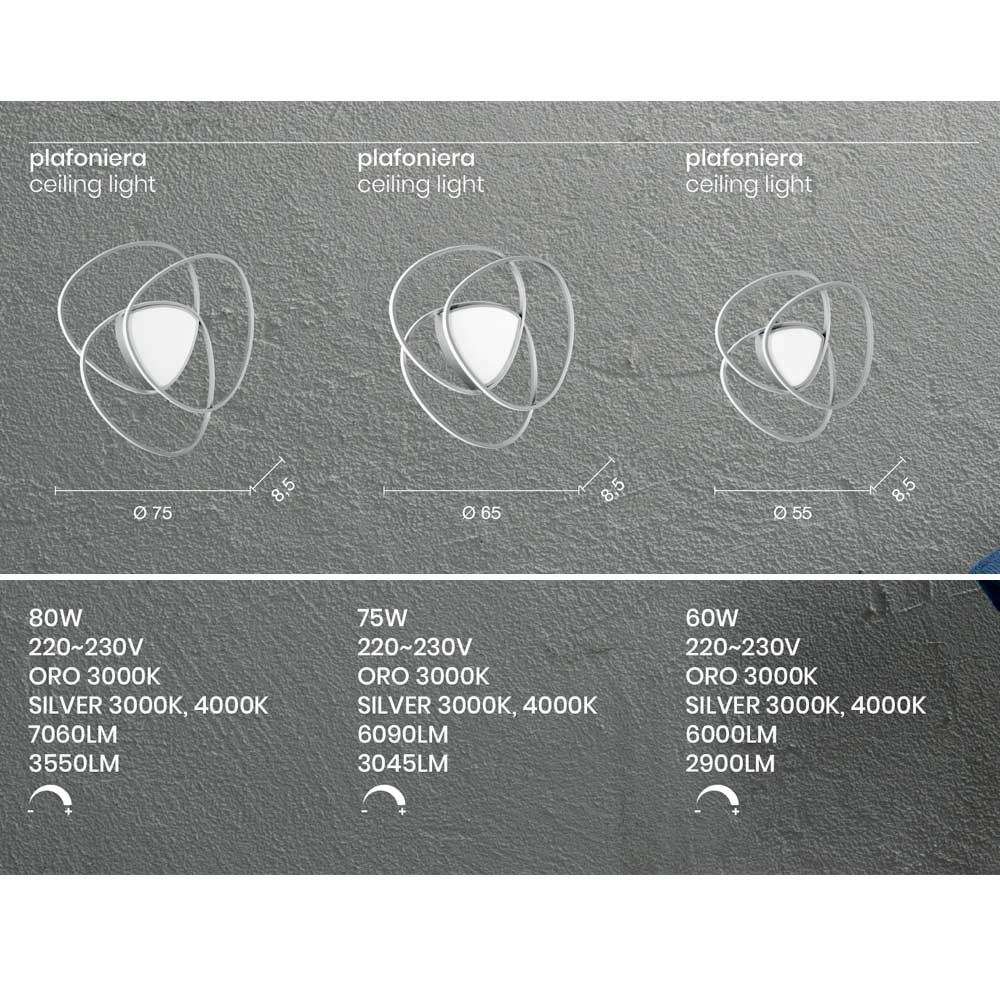 - diâmetro 55 x H 8,5 cm (LED 60W 220-230V 3000K 6000LM).