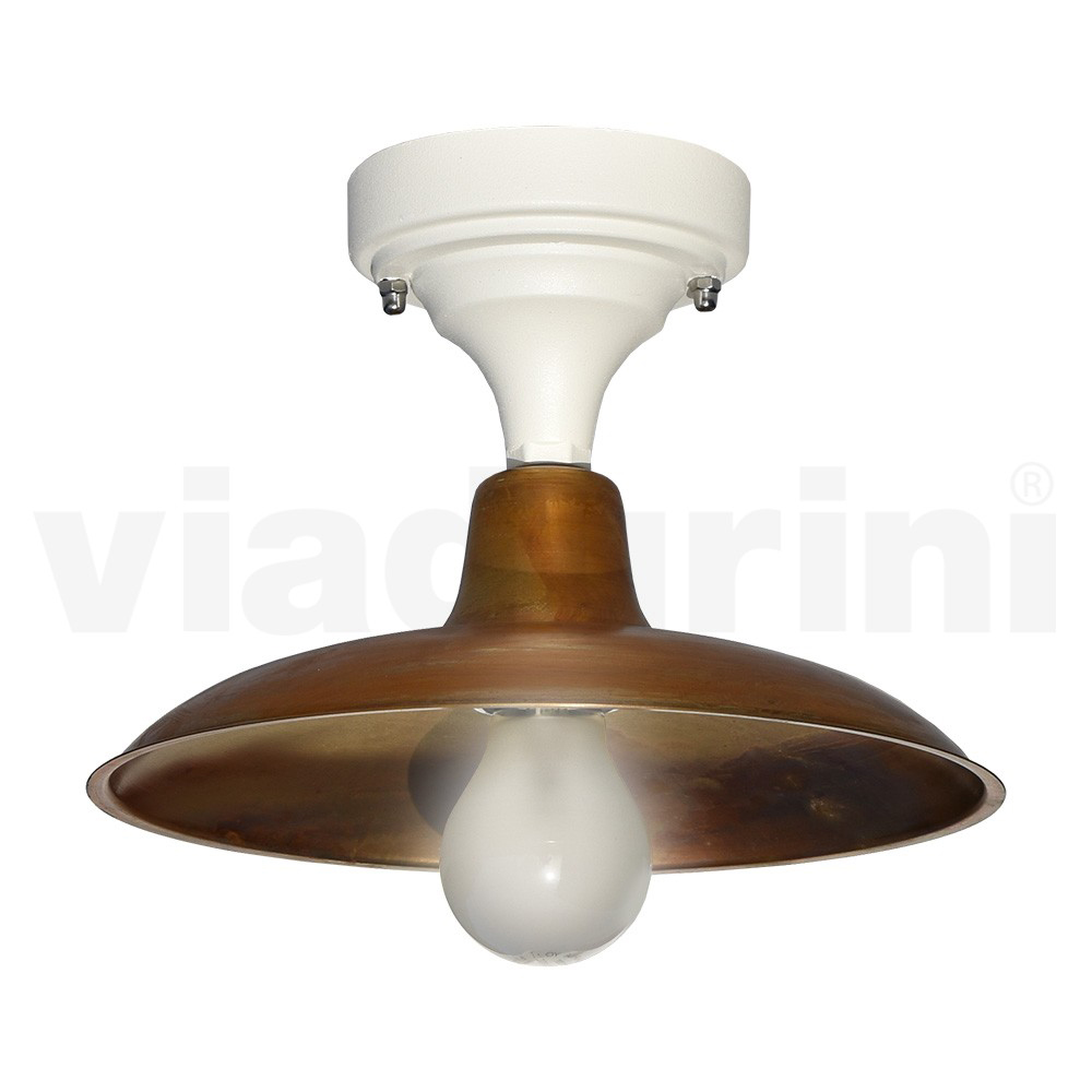Plafon vintage de alumínio para exterior com difusor de latão Fabricado na Itália.
