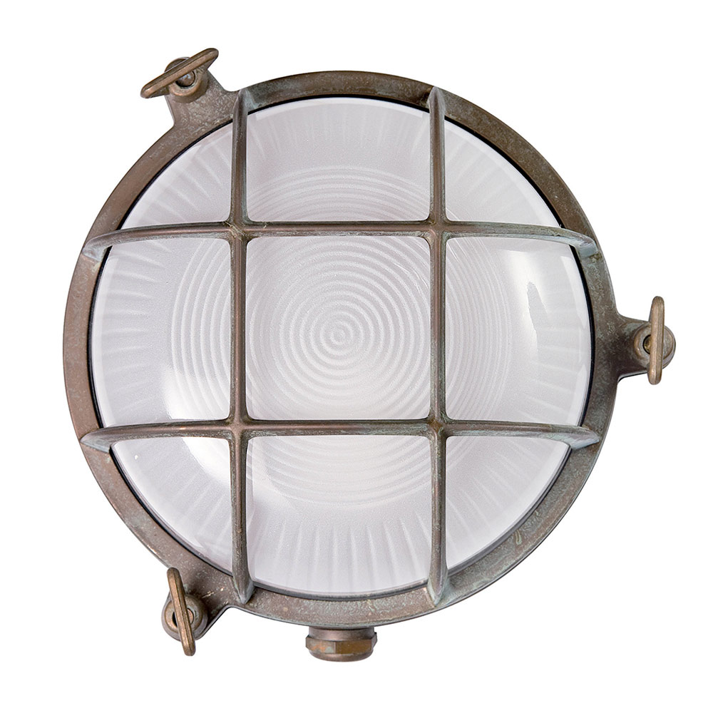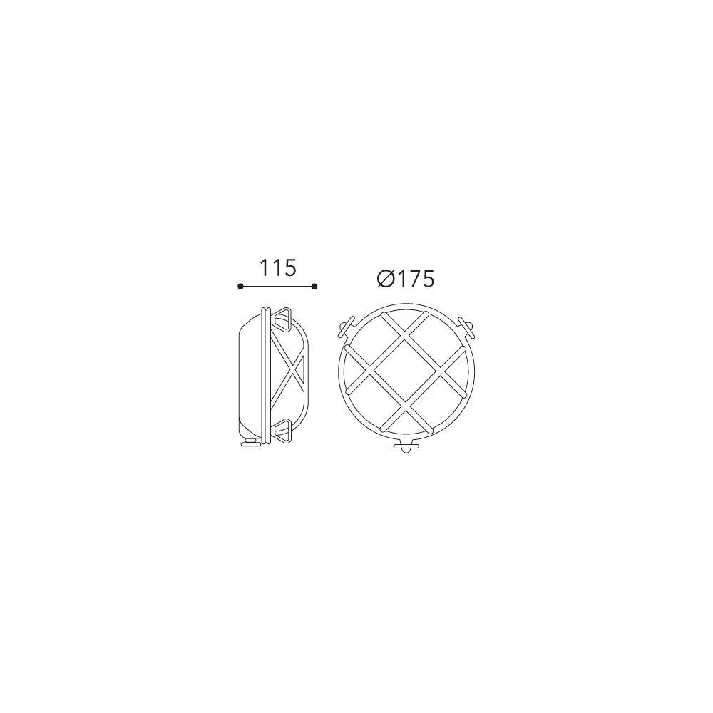 O difusor redondo em vidro opalino é protegido por uma sólida grade metálica que evoca o universo náutico e industrial, garantindo ao mesmo tempo segurança e durabilidade . A luz é funcional e envolvente , perfeita para iluminar fachadas , entradas , escadas externas e espaços exteriores .