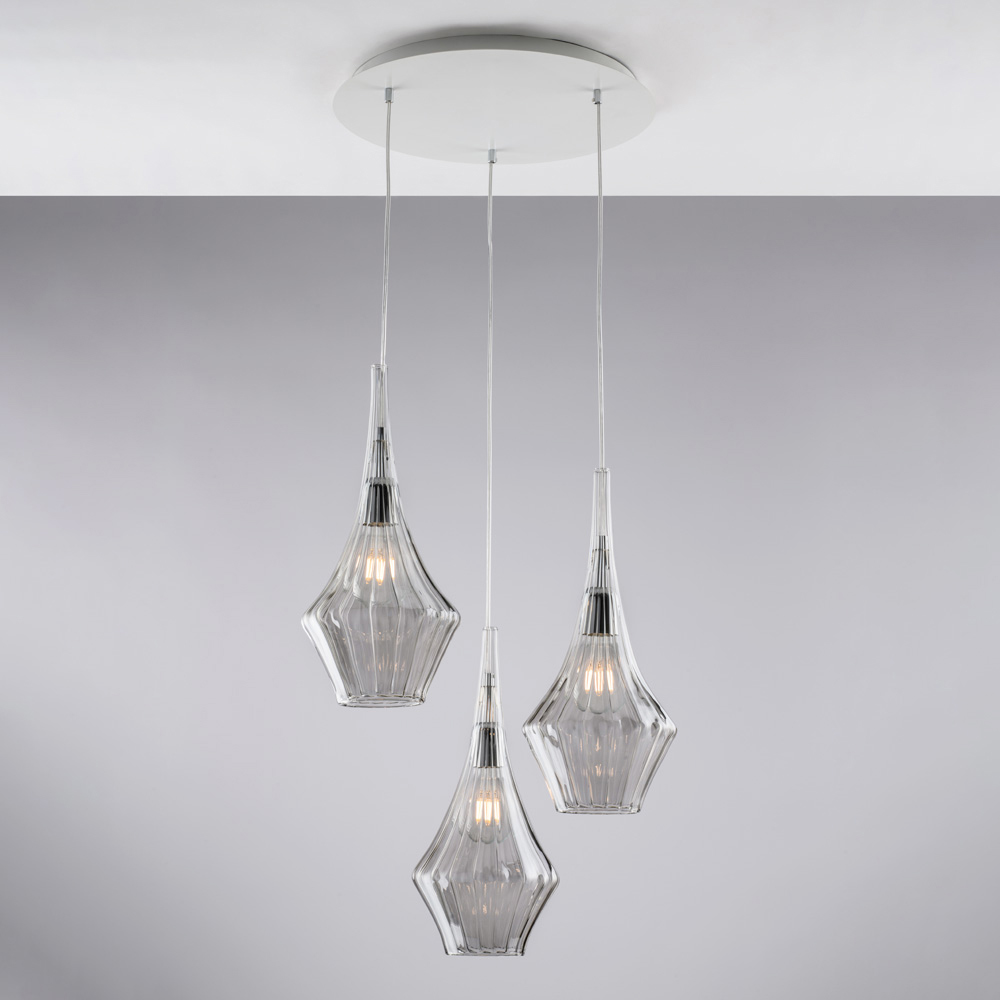 Disponível nos acabamentos transparente , âmbar ou cinza , este pendente permite personalizar a atmosfera do seu espaço: luminoso e arejado na versão transparente, acolhedor e envolvente na âmbar, moderno e elegante na cinza. É ideal para salas de estar , salas de jantar , ilhas de cozinha , espaços abertos e ambientes corporativos de design .
