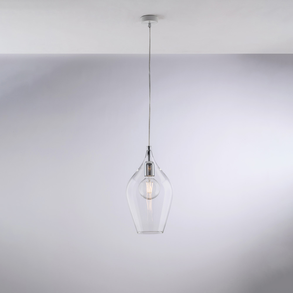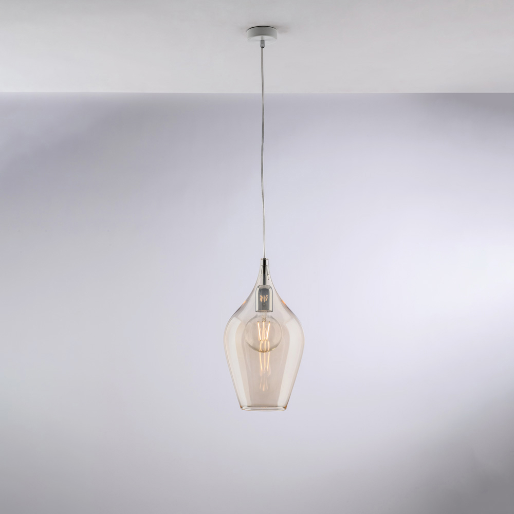 Disponível nos acabamentos transparente , âmbar ou cinza , este pendente adapta-se a diversos estilos de decoração: luminoso e minimalista na versão transparente, aconchegante e envolvente na âmbar, elegante e moderno na cinza. É ideal para cozinhas , ilhas , mesas de jantar , corredores , cantinhos de leitura e espaços comerciais com design diferenciado , podendo ser usado individualmente ou em composições.