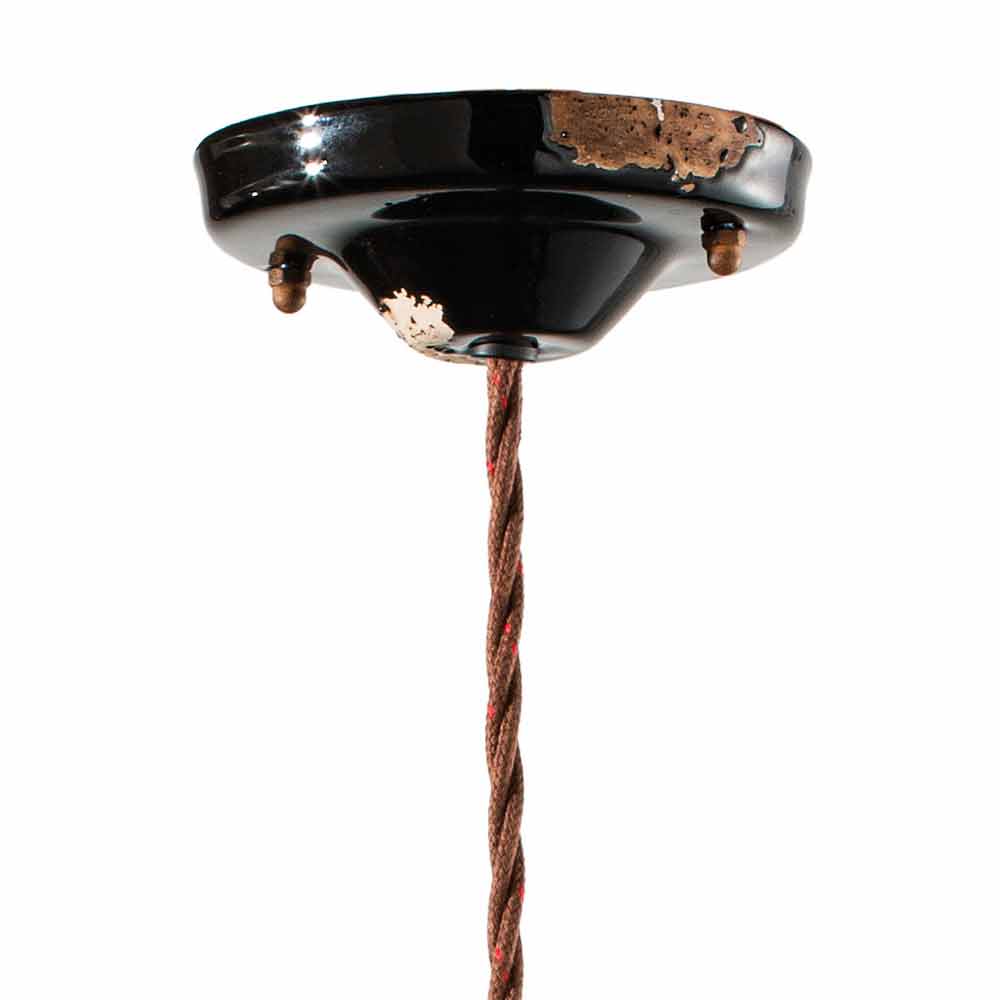Outra peculiaridade desta suspensão está contida nos detalhes em cerâmica: o dossel, a esfera decorativa e o prato, todos em cerâmica, disponíveis em diferentes variações cromáticas.