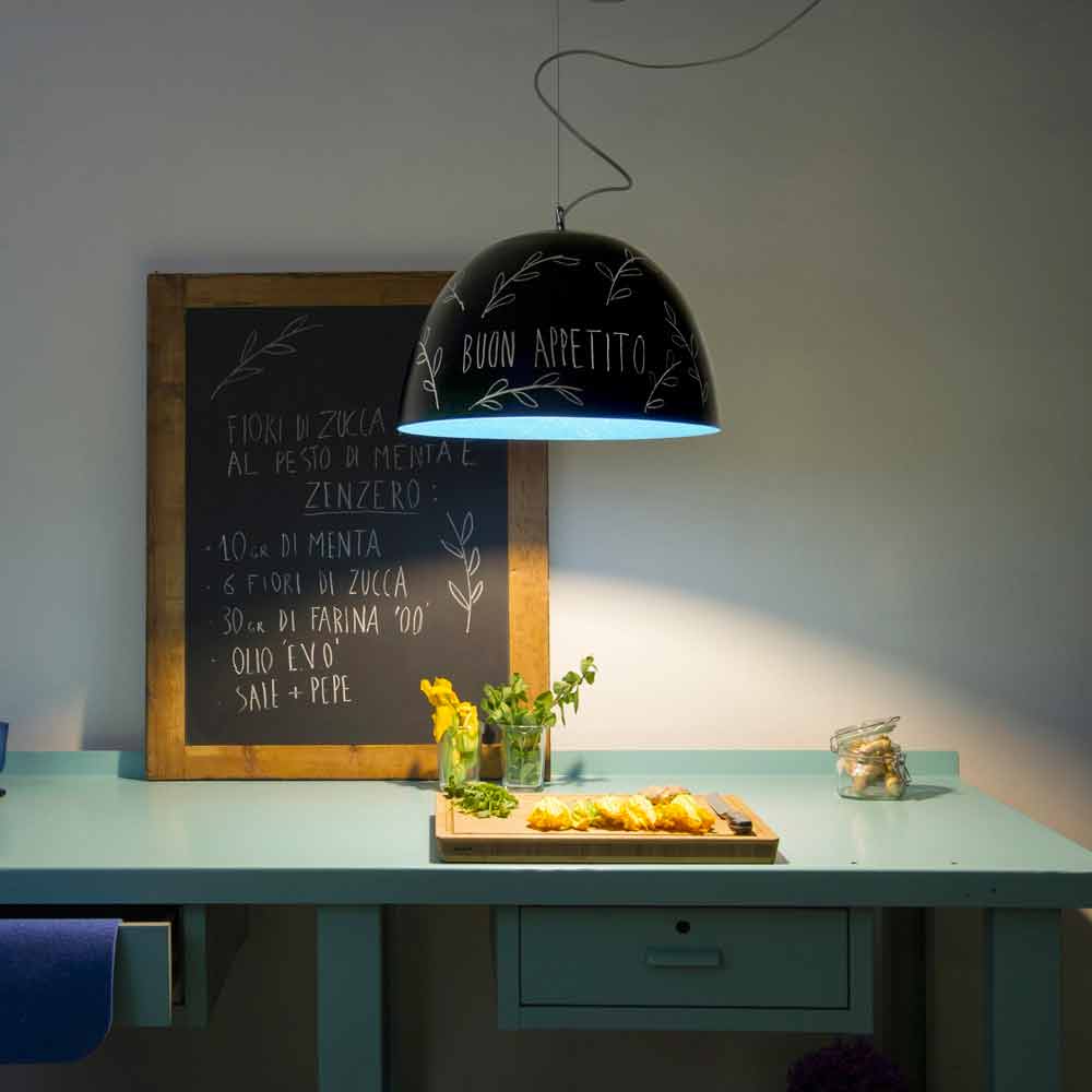 O lustre suspenso H2o Lavagna da coleção Matt by In-es.artdesign tem estrutura em: laprene, nylon, aço, nebulite, resina de efeito de quadro-negro.
