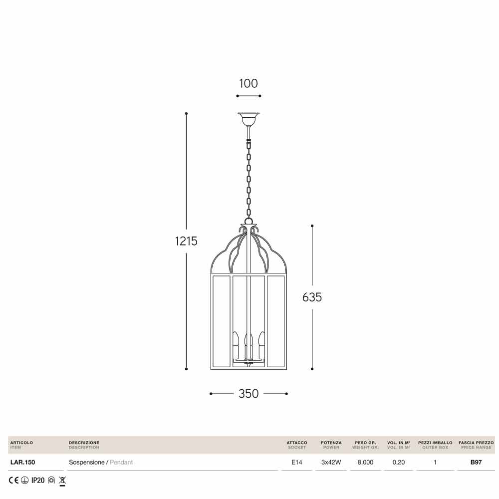 Candeeiro de suspensão de design Jean Il Fanale em ferro antigo
