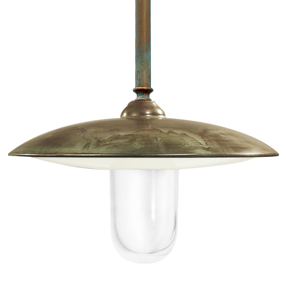 Luminária de exterior em latão antigo com vidro transparente.