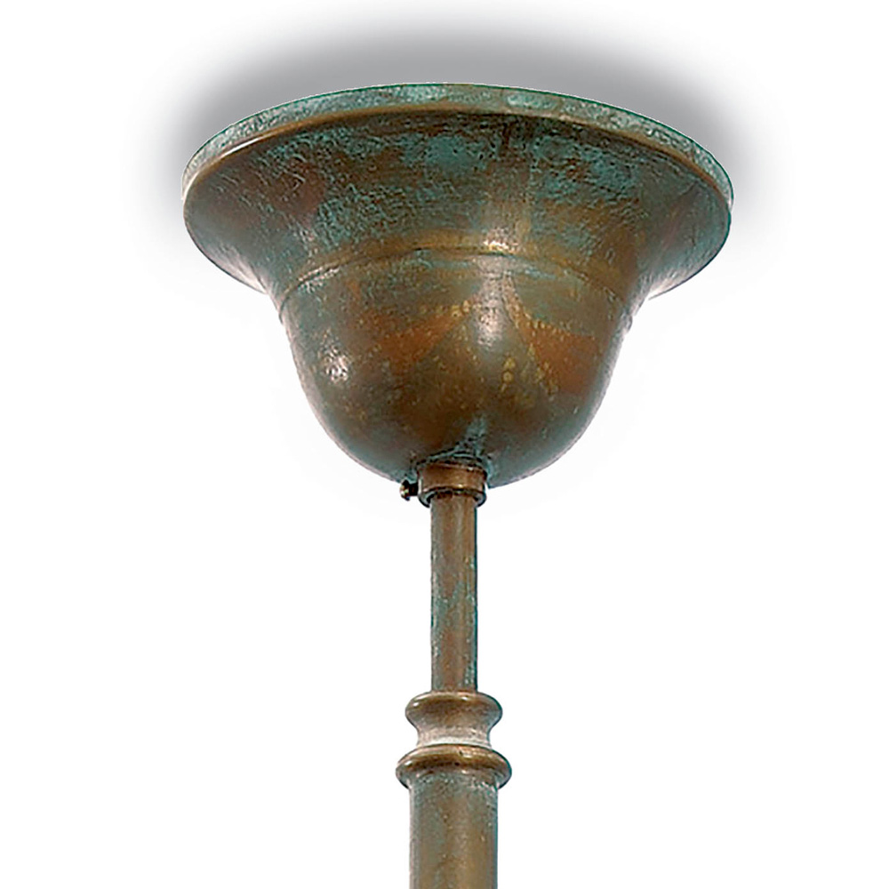 Esta luminária de exterior expressa um equilíbrio perfeito entre a tradição artesanal e o requinte intemporal . A estrutura em latão , com acabamentos envelhecidos , confere ao conjunto um aspeto acolhedor e material, ideal para valorizar espaços exteriores com um toque clássico , rústico ou industrial .