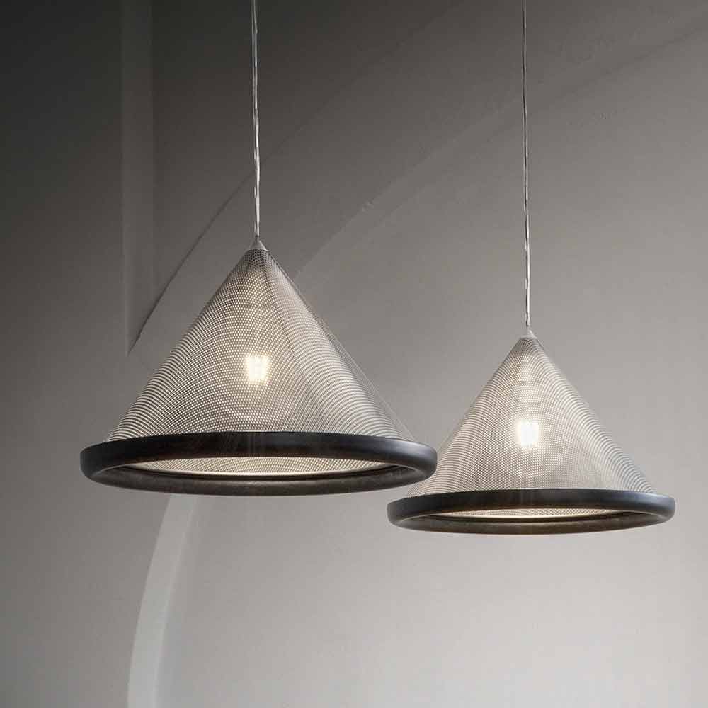 A lâmpada Tamiso foi projetada para ser protagonista do ambiente em que está inserida. Seu formato piramidal único e inovador, aliado ao uso de aço inox perfurado, vai chamar a atenção de seus convidados. Nele a funcionalidade é combinada com um forte impacto decorativo. A luz suave e intimista que se filtra pela textura do aço parece ecoar no espaço envolvente, recriando uma atmosfera única.