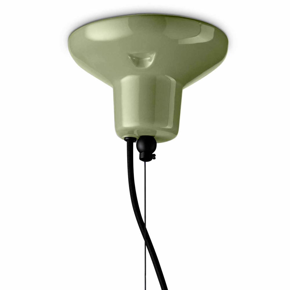 Suspensão confeccionada com 4 elementos cerâmicos coloridos , difusor em vidro opalino acetinado e cabo revestido de algodão, inteiramente Fabricado na Itália.