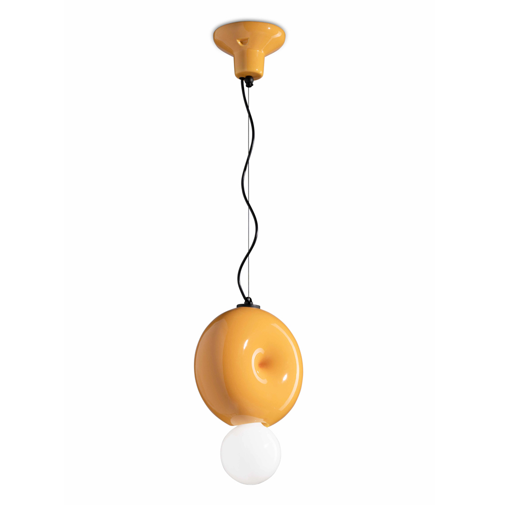 Esta luminária suspensa é um esplêndido exemplo de como o design pode elevar um espaço de vida ou de trabalho. A base cerâmica é modelada com cuidado que reflete a maestria dos artesãos italianos . O design é contemporâneo mas com um toque de nostalgia, tornando-o ideal para quem ama a combinação entre modernidade e calor retrô.