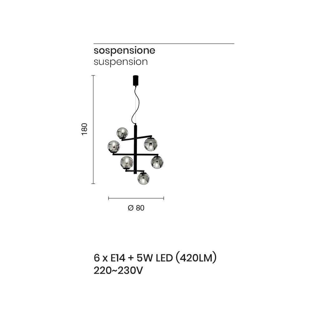 Lâmpadas : 6 x E14 LED 5W 500LM