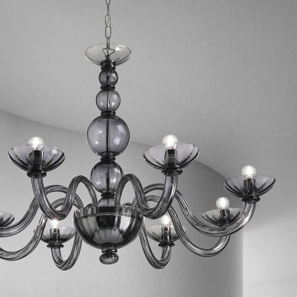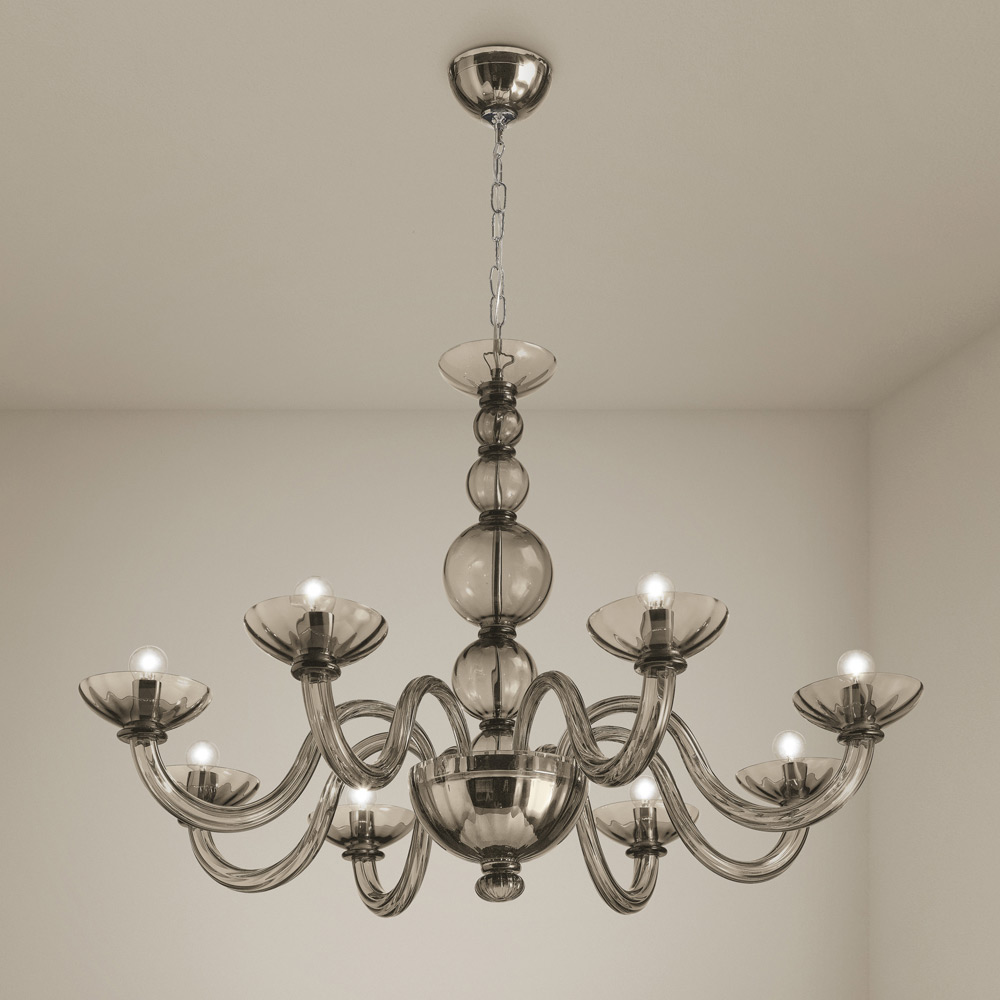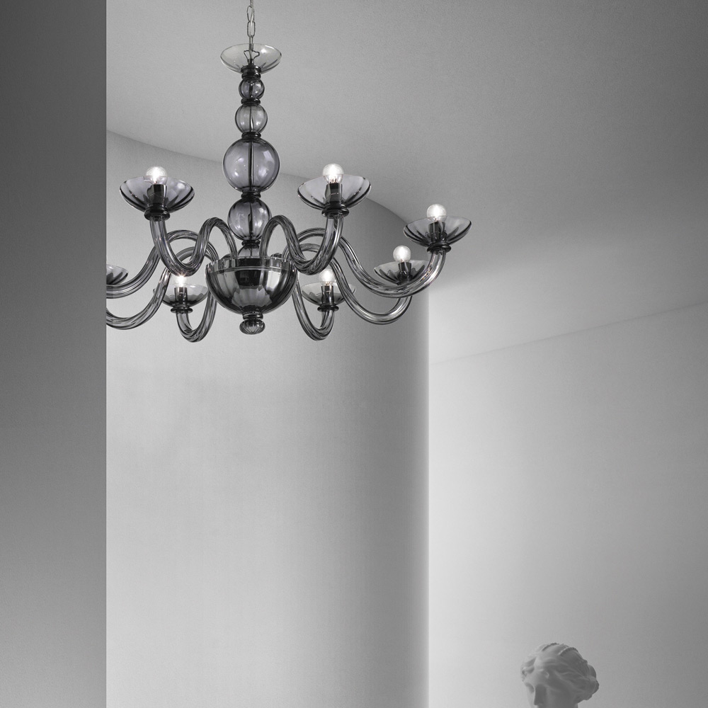 curvas refinadas que se adaptam perfeitamente a ambientes clássicos mas ao mesmo tempo também a espaços de estilo contemporâneo. O elemento de tradição é pontuado por seus maravilhosos componentes em vidro soprado inteiramente feito à mão que se transforma para se atualizar graças às cores da moda. Suas