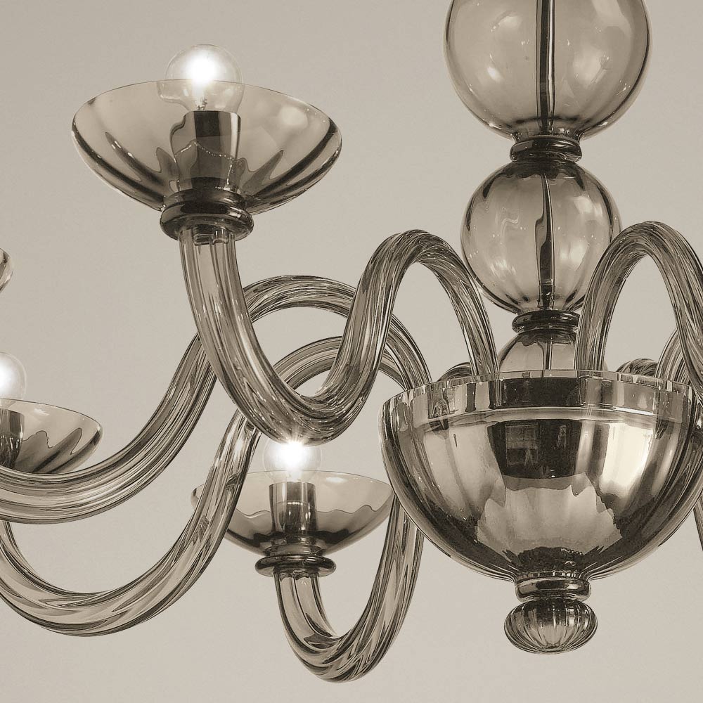 Candelabro de 8 luzes em vidro veneziano soprado à mão com detalhes em