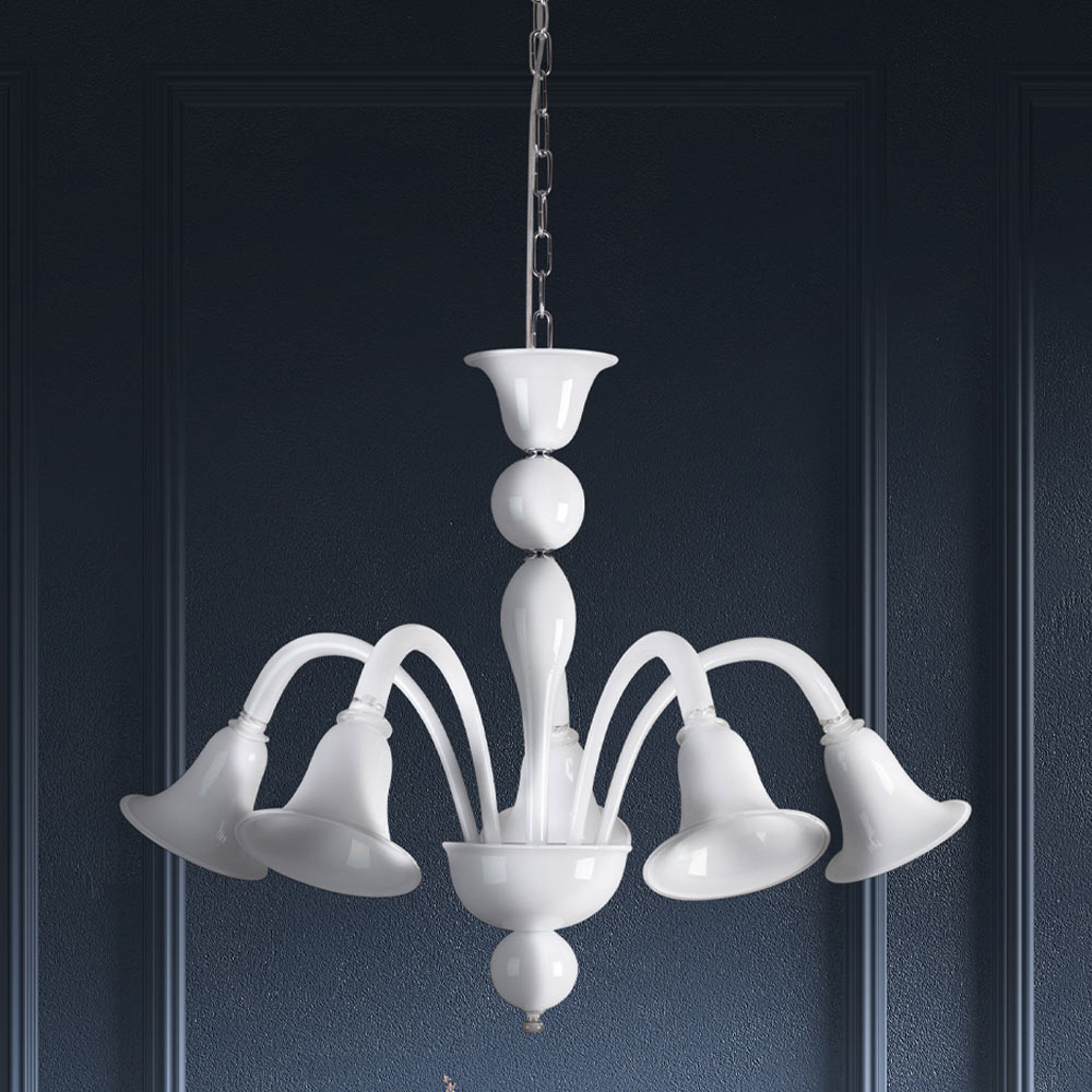 Lustre de vidro branco feito à mão em Veneza, estilo clássico.