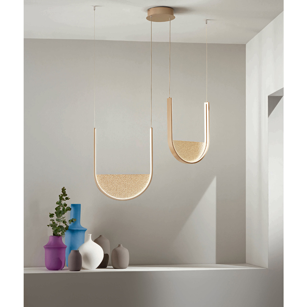 Lustre de metal com luz LED regulável e inserto de vidro shot Made in Italy