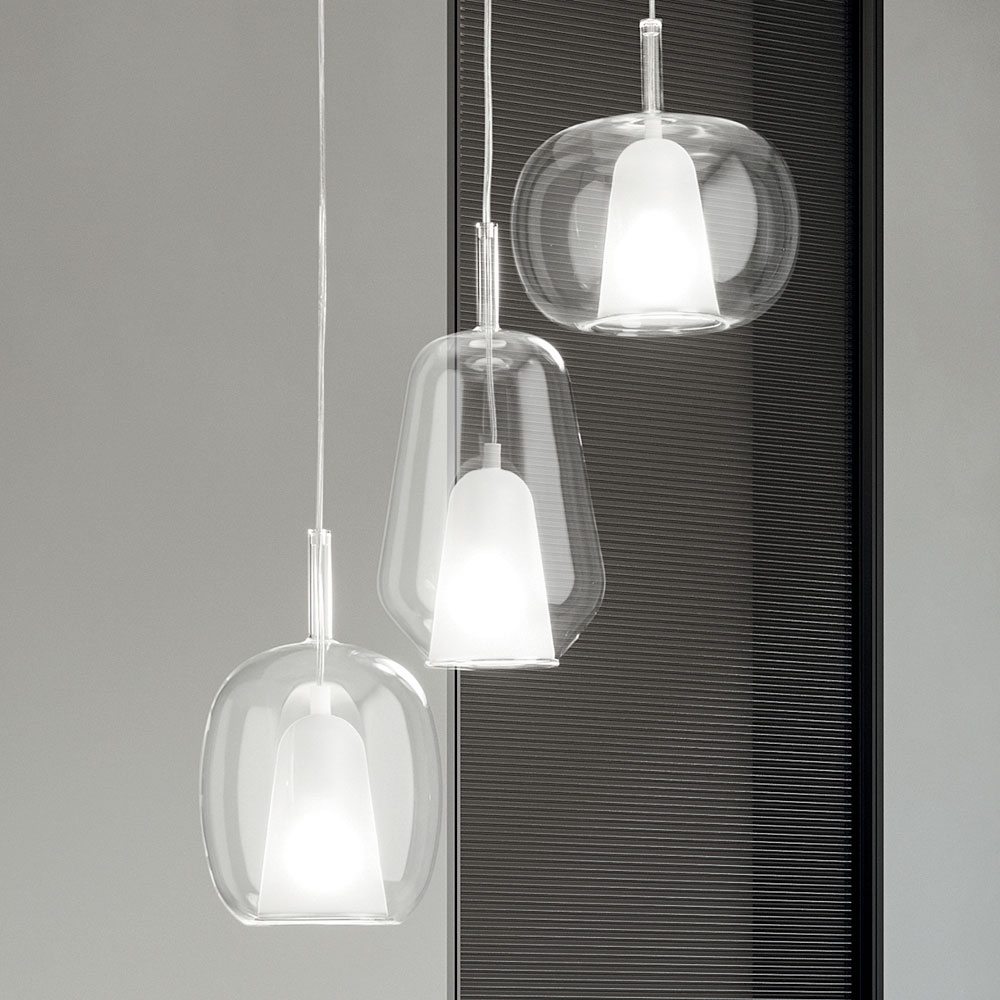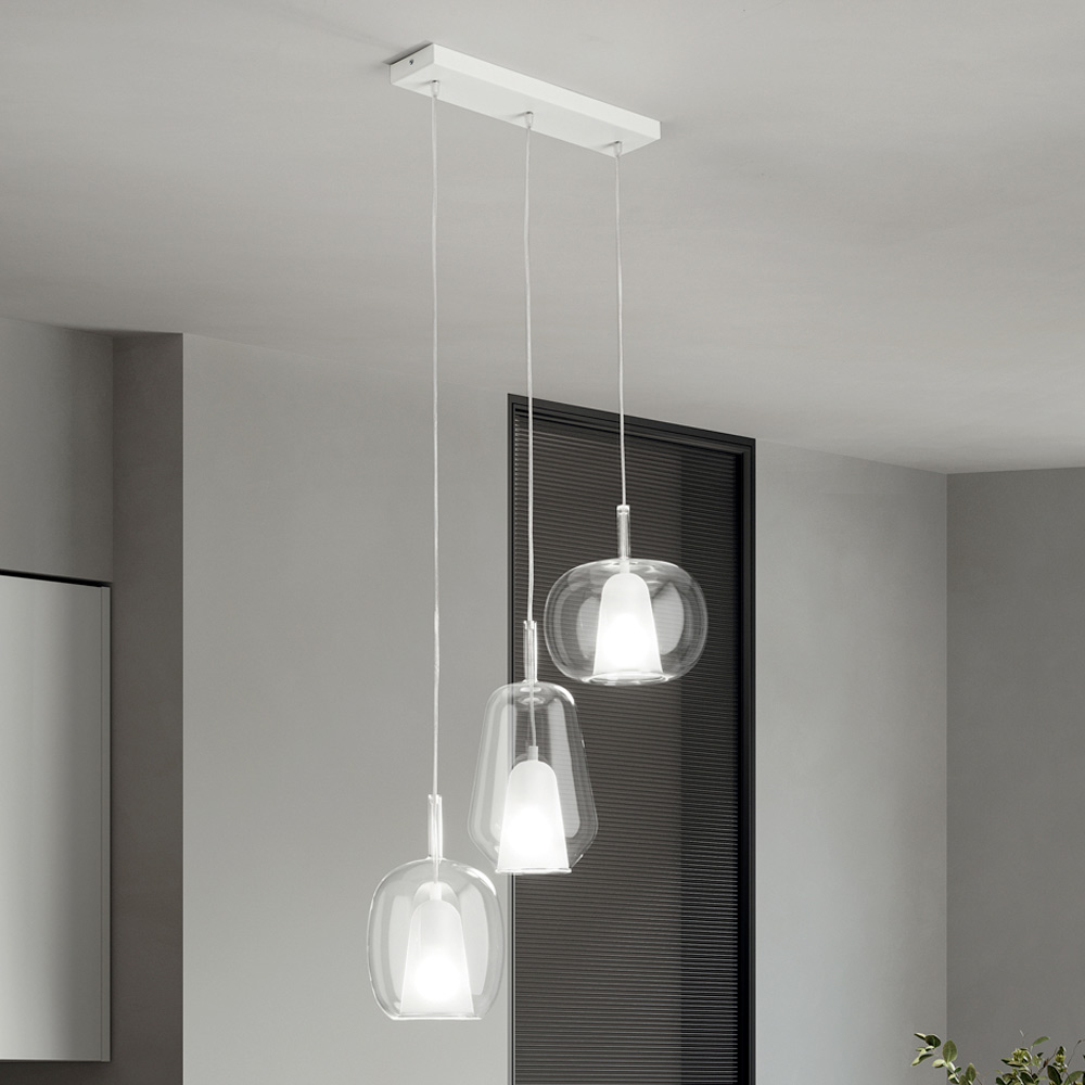 Lustre com 3 Difusores em Vidro Soprado Transparente Fabricado na Itália - Trilly