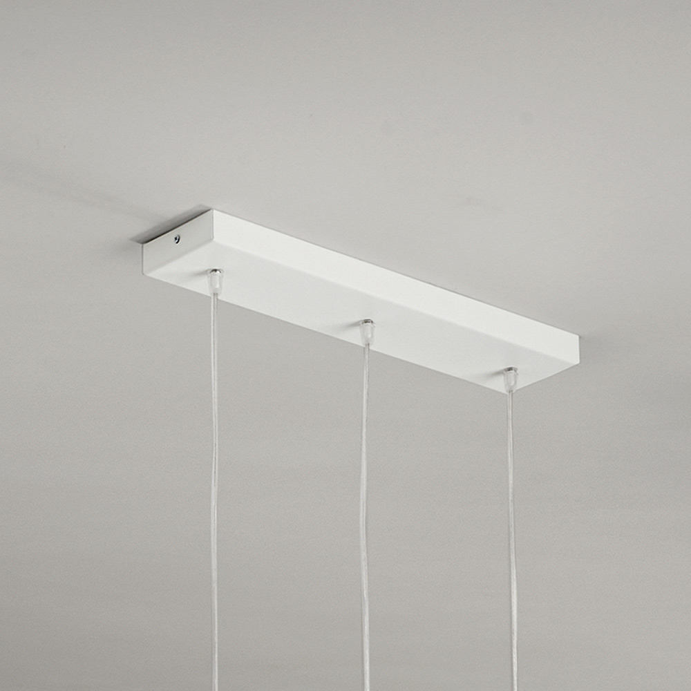 Lustre feito com base de teto em metal branco e difusores em vidro soprado , caracterizado por uma camada dupla: interna em vidro acetinado e externa em vidro colorido . Tampa em material polimérico para estabilizar o cabo em posição central. Cabos ajustáveis com comprimento máximo de 250 cm.