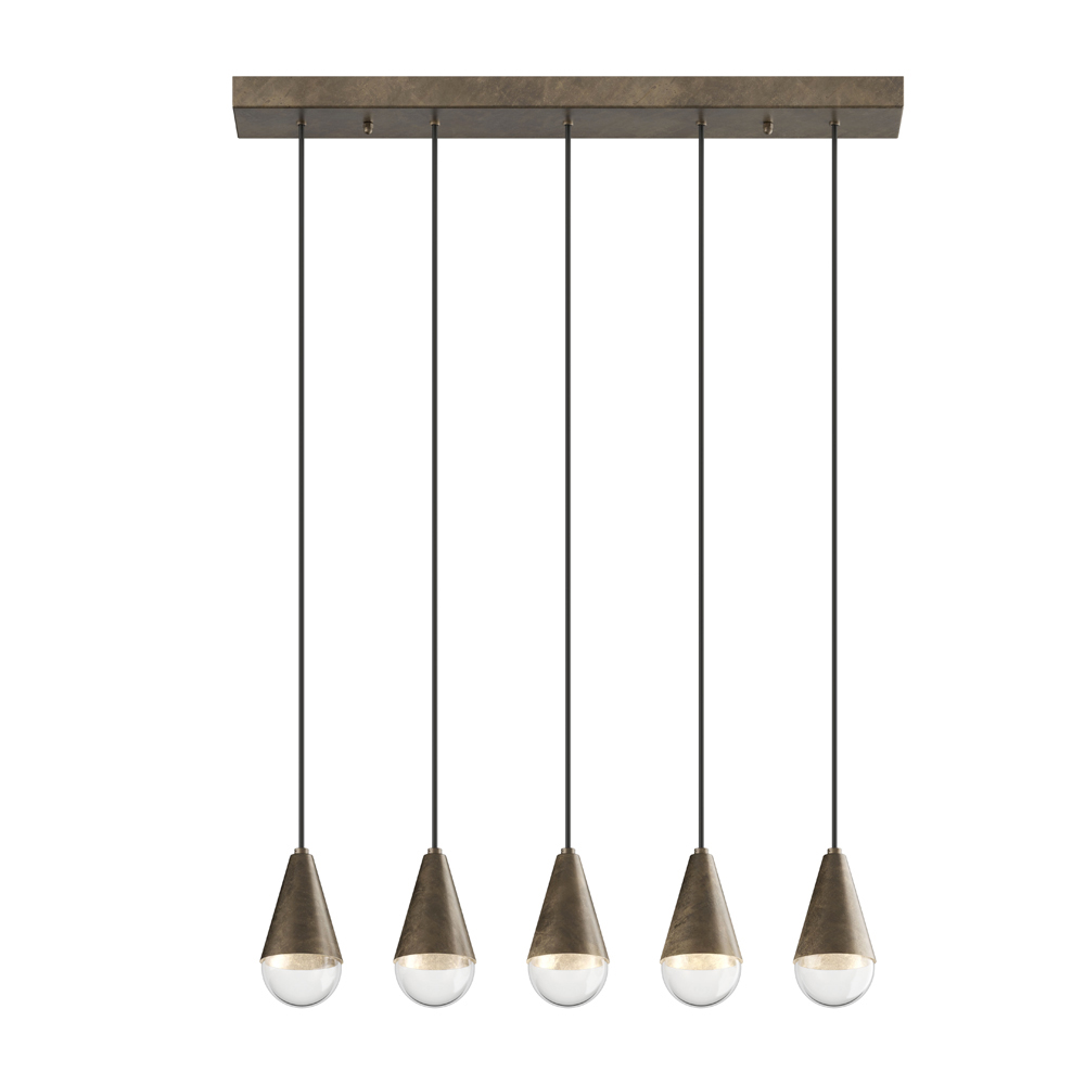 Lustre com 5 luzes em ferro antigo e vidro transparente Fabricado na Itália