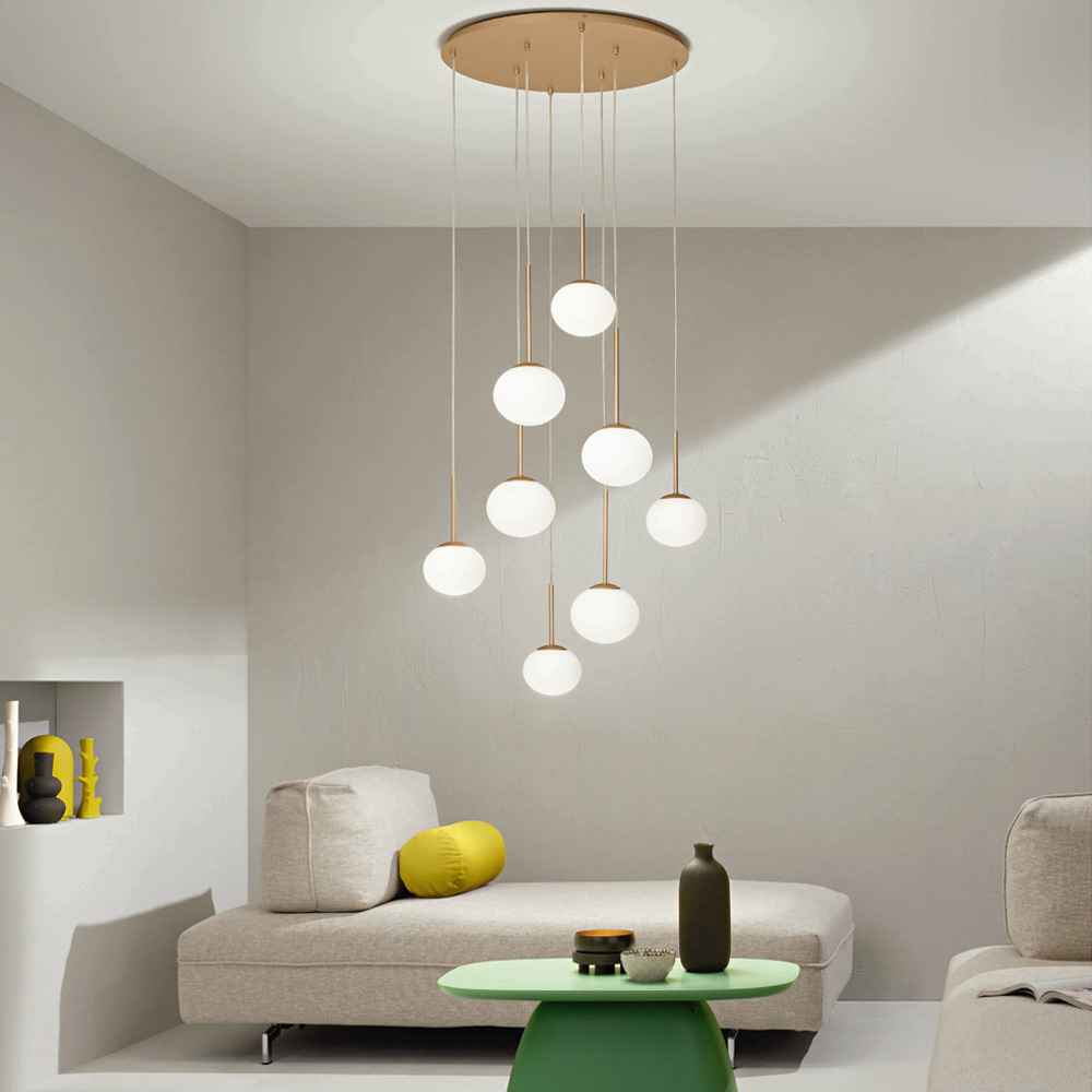 Lustre com luz LED em metal pintado e vidro soprado Fabricado na Itália