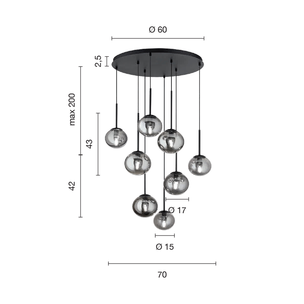 - base no teto: diâmetro 60cm x altura 2,5cm