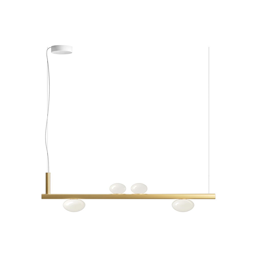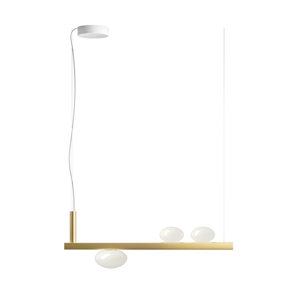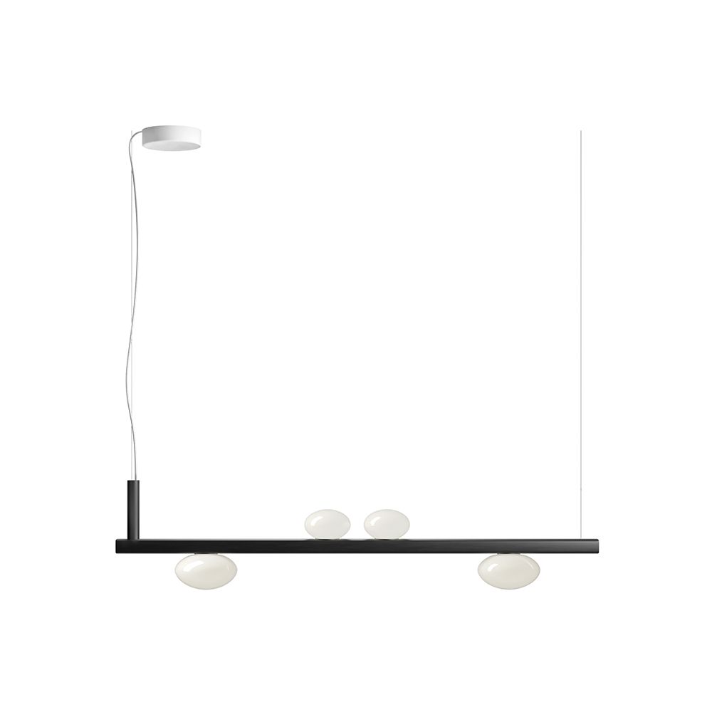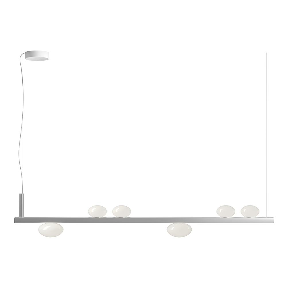 Este pendente é um verdadeiro ícone de design inteligente e tecnologia discreta . Sua estrutura limpa e linear é combinada com elegantes difusores esféricos de vidro opalino, que parecem estar suspensos em equilíbrio, criando um efeito visual moderno e leve .