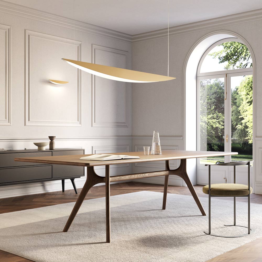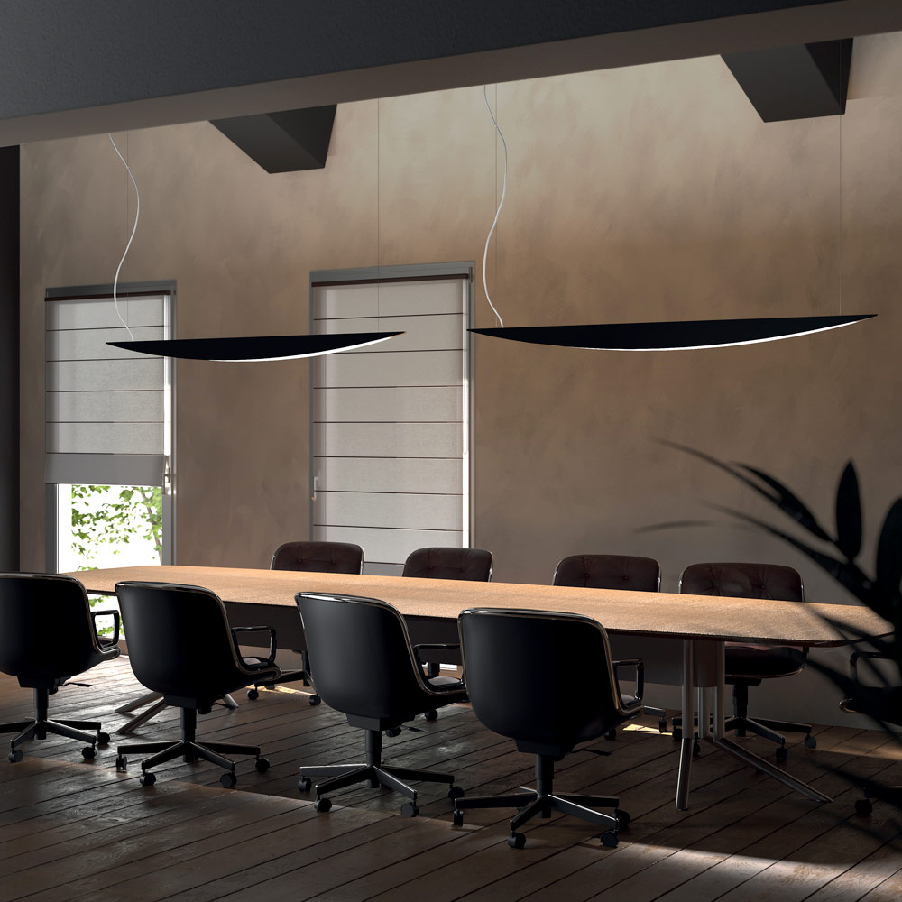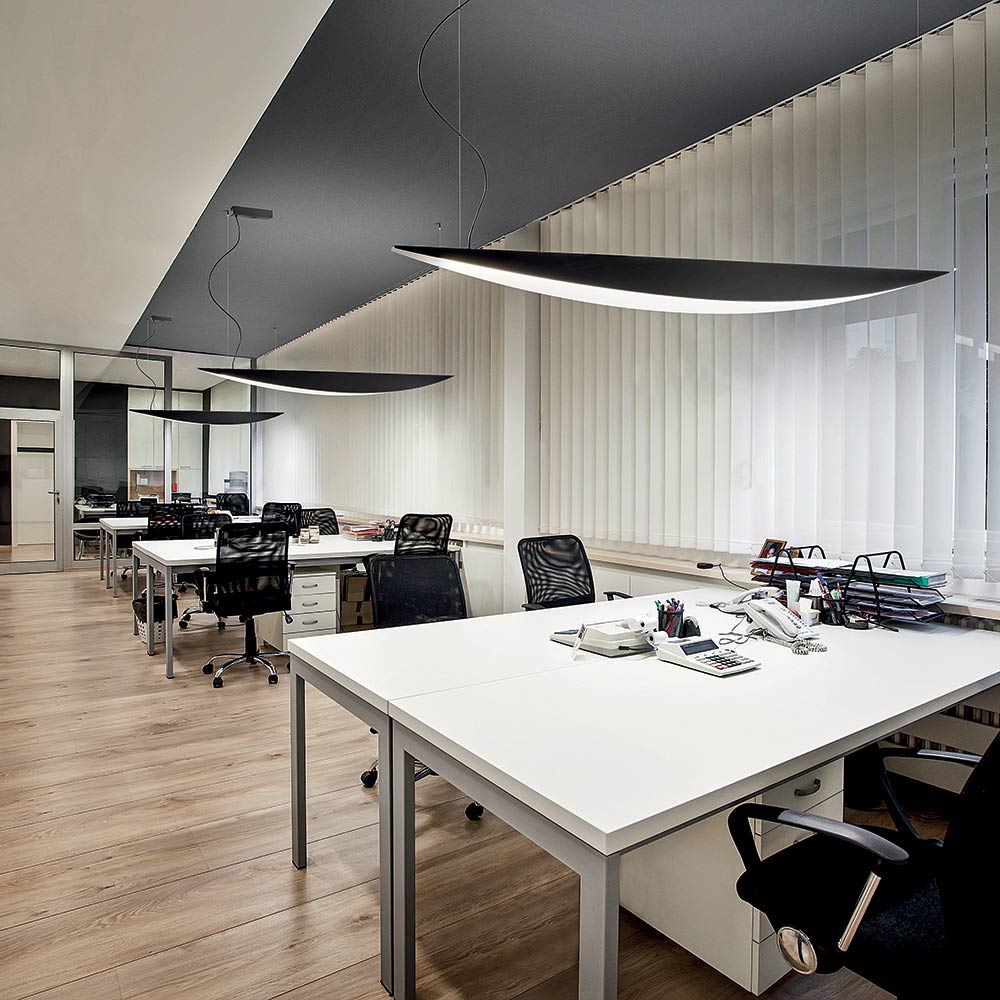 Este pendente personifica a combinação perfeita de design contemporâneo e funcionalidade profissional . Seu formato cônico, fino e aerodinâmico evoca o perfil de uma asa, conferindo ao ambiente uma sensação de leveza e movimento .