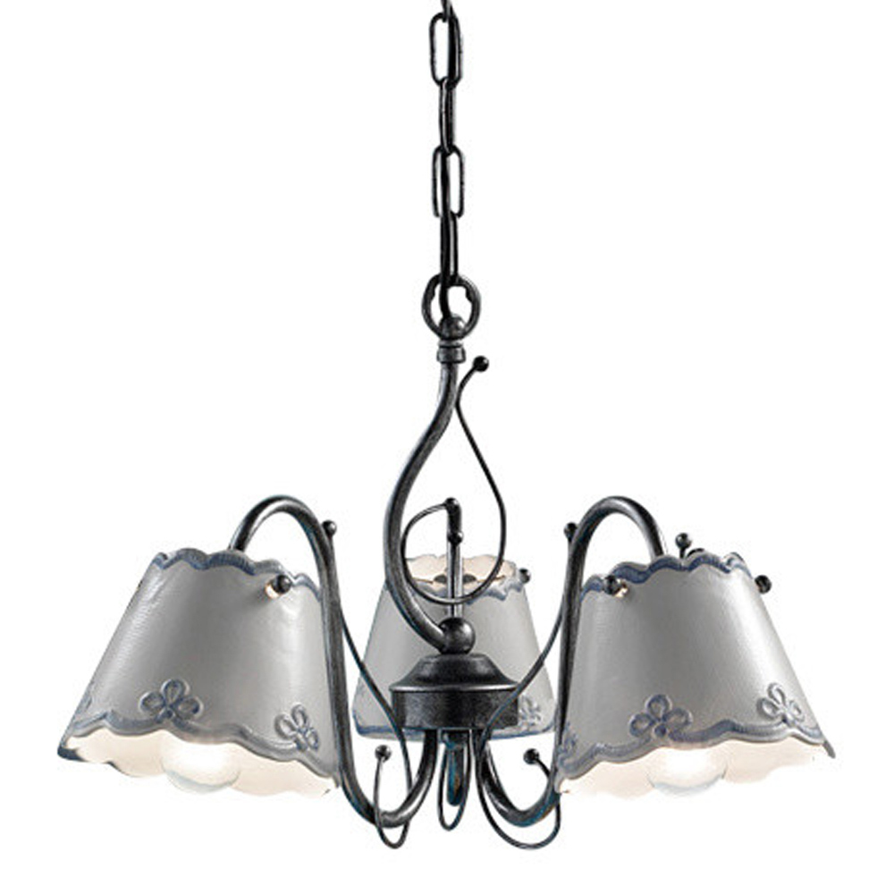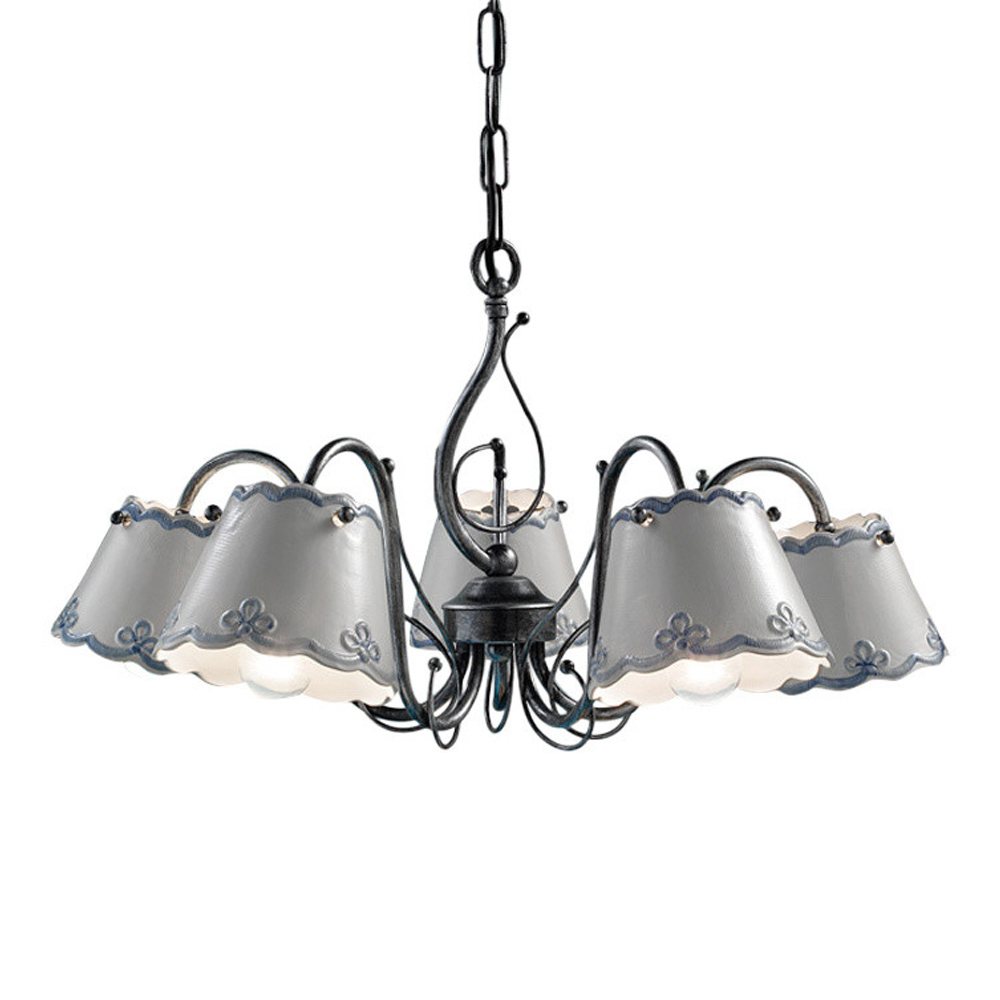 Lustre de sala de estar 3 ou 5 luzes artesanais em metal e cerâmica com efeito bordado, fabricado na Itália pela Ferroluce.