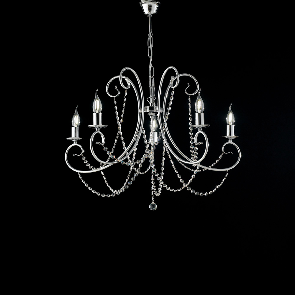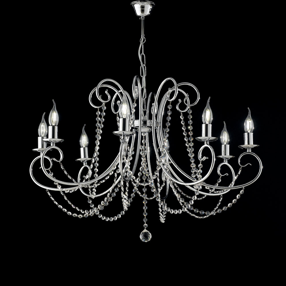 Ícone de elegância atemporal, este lustre clássico de ferro cativa à primeira vista com suas linhas sinuosas , braços finamente trabalhados e cascatas de cristais decorativos que refletem a luz com um brilho refinado.