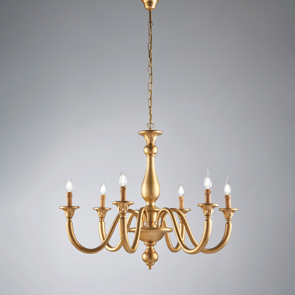 Elegante e atemporal, este lustre clássico de madeira, feito à mão, interpreta com requinte o estilo tradicional italiano, combinando formas harmoniosas e acabamentos cativantes. A estrutura esbelta, com braços curvos e luzes em formato de vela , confere leveza visual e cria uma atmosfera acolhedora e convidativa, perfeita para espaços com elegância clássica.