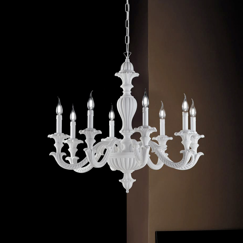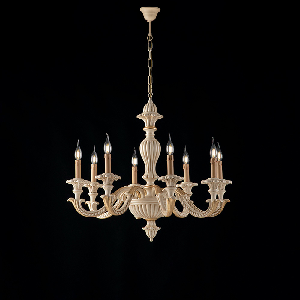Expressão autêntica da elegância artesanal italiana, este lustre clássico de madeira é uma verdadeira obra-prima decorativa, capaz de transformar a luz em um elemento de mobiliário verdadeiramente cativante. A estrutura finamente trabalhada, com braços sinuosos e detalhes torneados , evoca o estilo tradicional dos lustres vintage, reinterpretados com requinte.