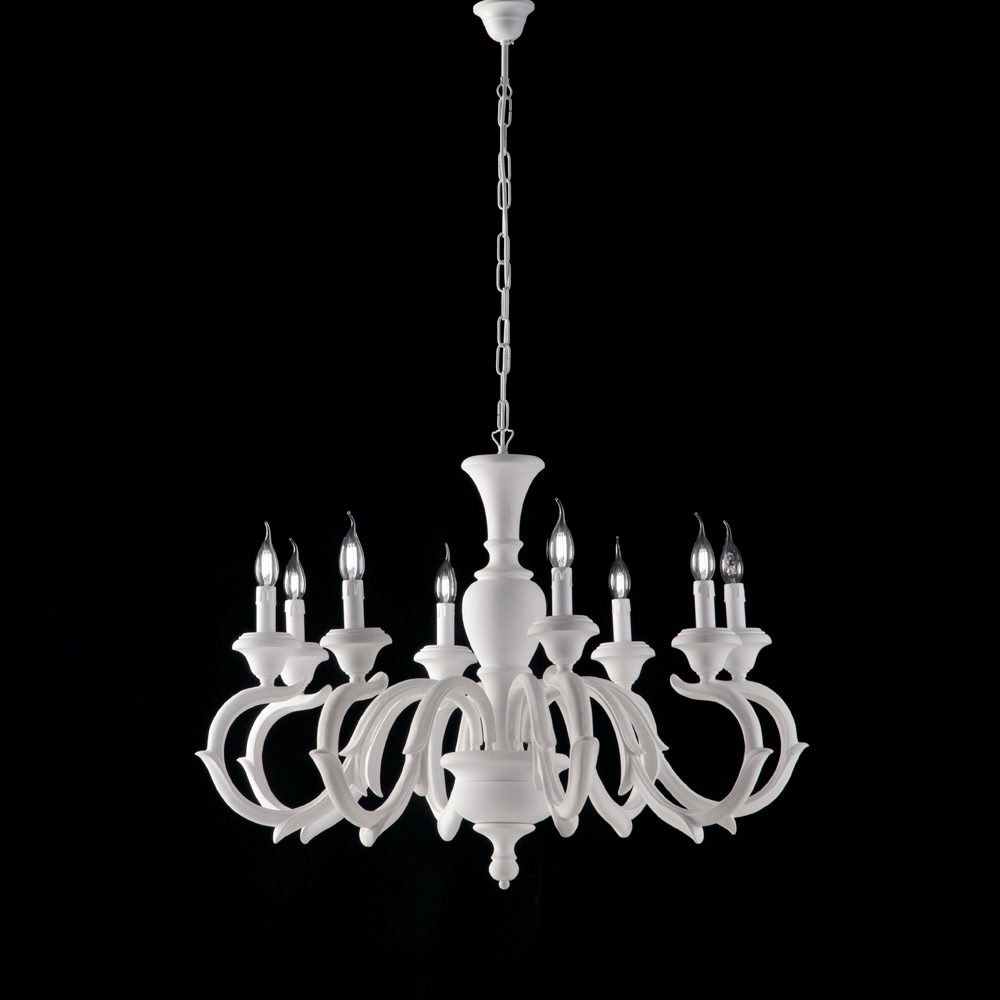 Elegância atemporal e artesanato primoroso se unem neste lustre clássico de madeira, fabricado na Itália , produzido com cuidado e atenção aos detalhes. A estrutura harmoniosa, caracterizada por braços sinuosos em estilo tradicional , confere ao ambiente uma elegância dramática e refinada.