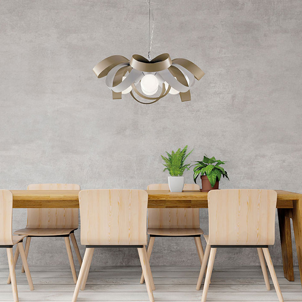 Materiais selecionados, como ferro e aço, criam um efeito elegante e uma agradável emissão de luz. Fabricado inteiramente na Itália, este produto é o resultado de um trabalho meticuloso que alia estética e funcionalidade.